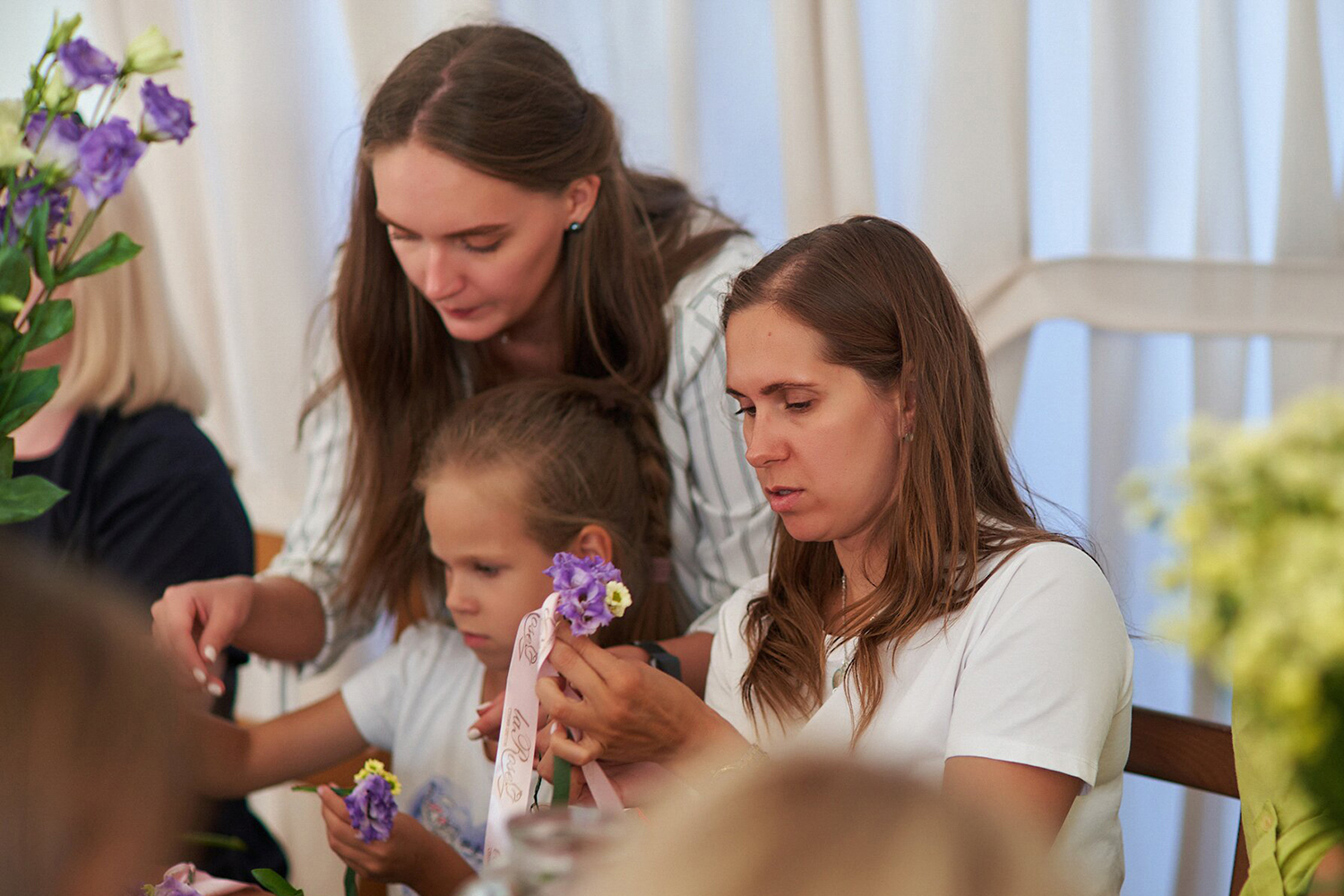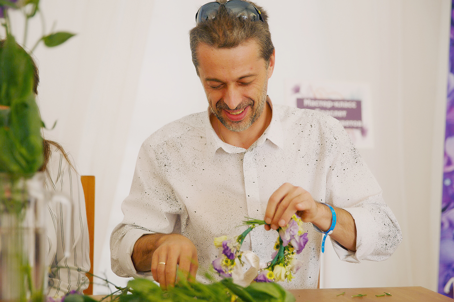 Мы с радостью пообщались с гостями мероприятия, провели три творческих Мастер-класса по созданию цветочных браслетов, фотографировались с гостями на красивой фотозоне и поучаствовали в розыгрыше подарков!