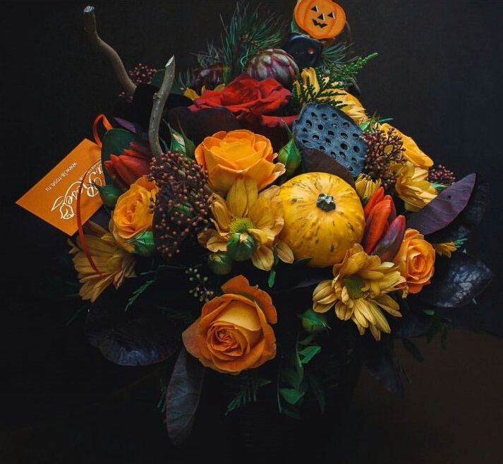 Друзья, а Вы запаслись тыквами и сладостями? Ждем Вас у нас в салоне за страшно-красивыми композициями!