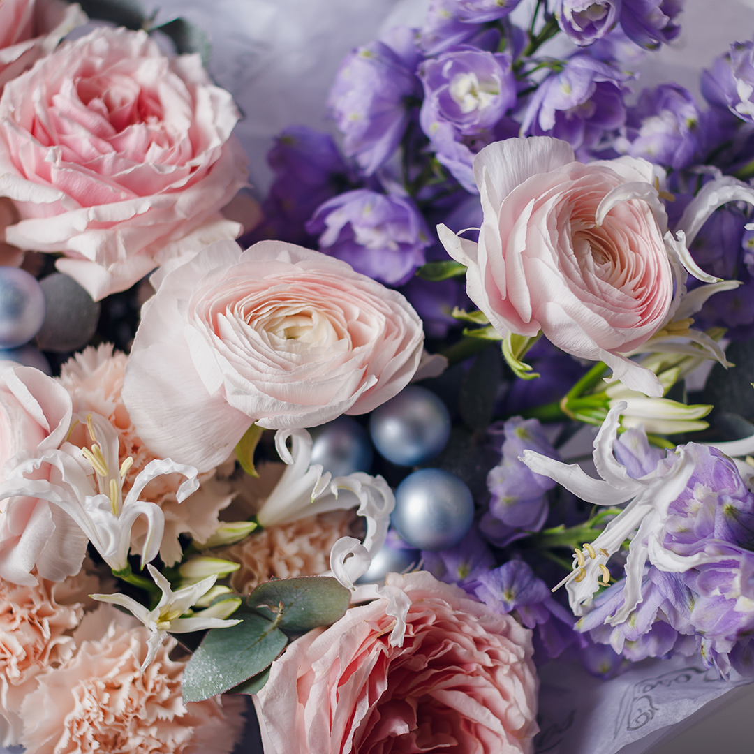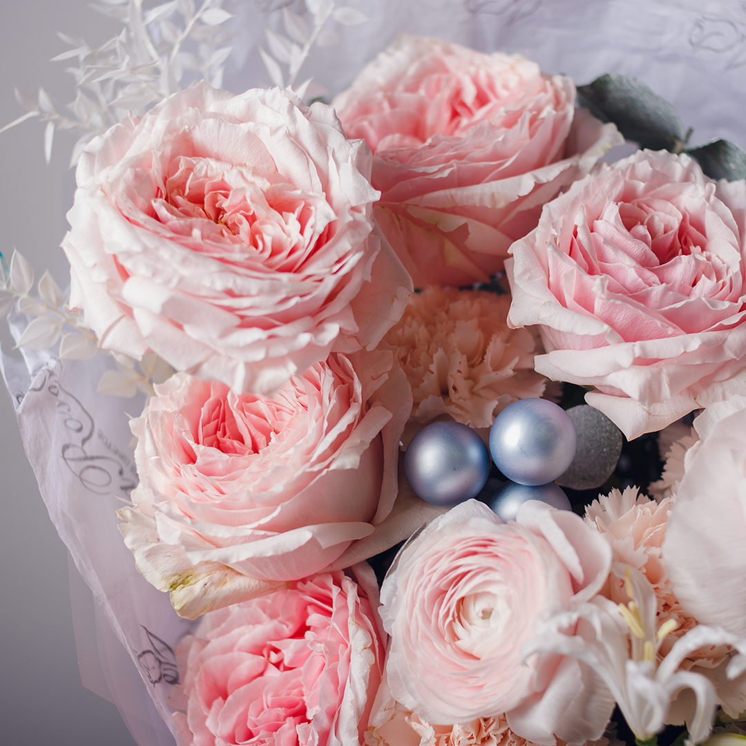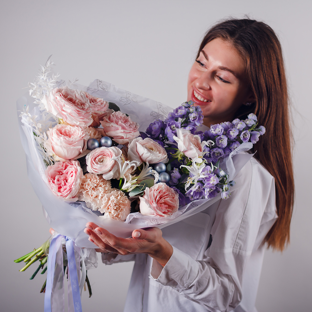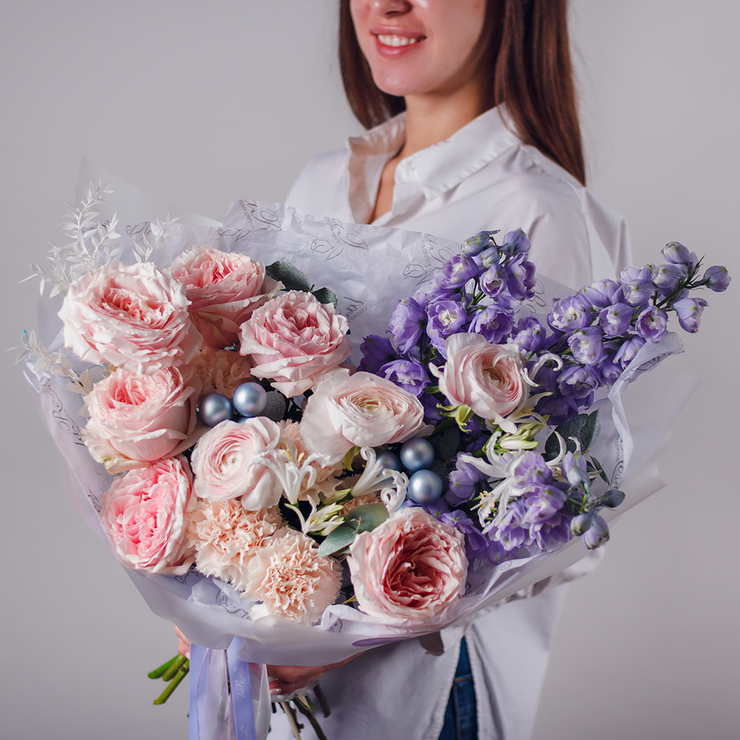 Некоторые цветы и материалы являются сезонными и могут быть недоступны в данный момент, поэтому мы оставляем за собой авторское право определять конечный состав букета.