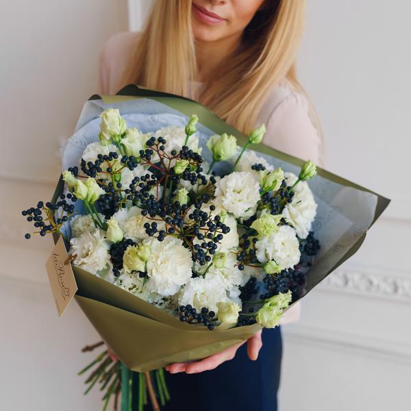 Наполнение: эустома, вибурнум.