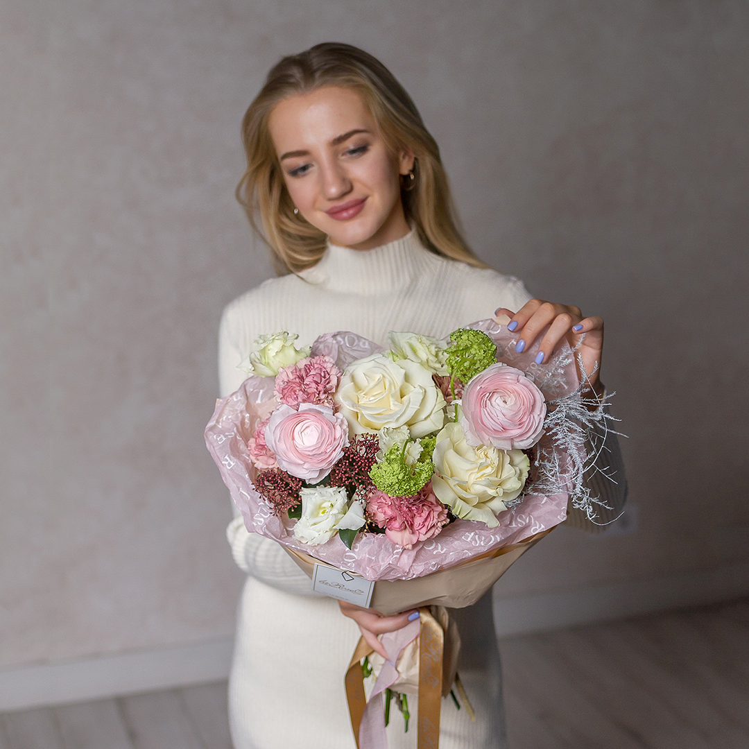 Некоторые цветы и материалы являются сезонными и могут быть недоступны в данный момент, поэтому мы оставляем за собой авторское право определять конечный состав букета.