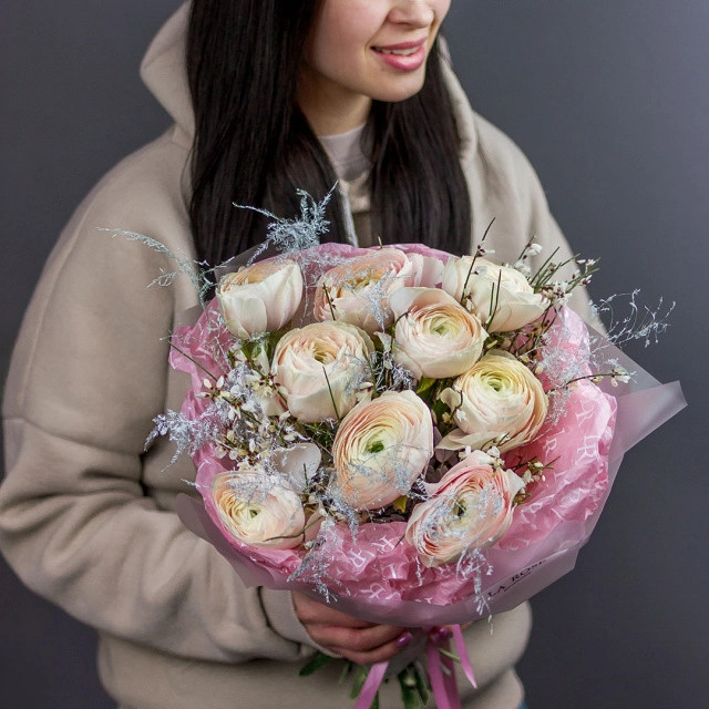 Некоторые цветы и материалы являются сезонными и могут быть недоступны в данный момент, поэтому мы оставляем за собой авторское право определять конечный состав букета.