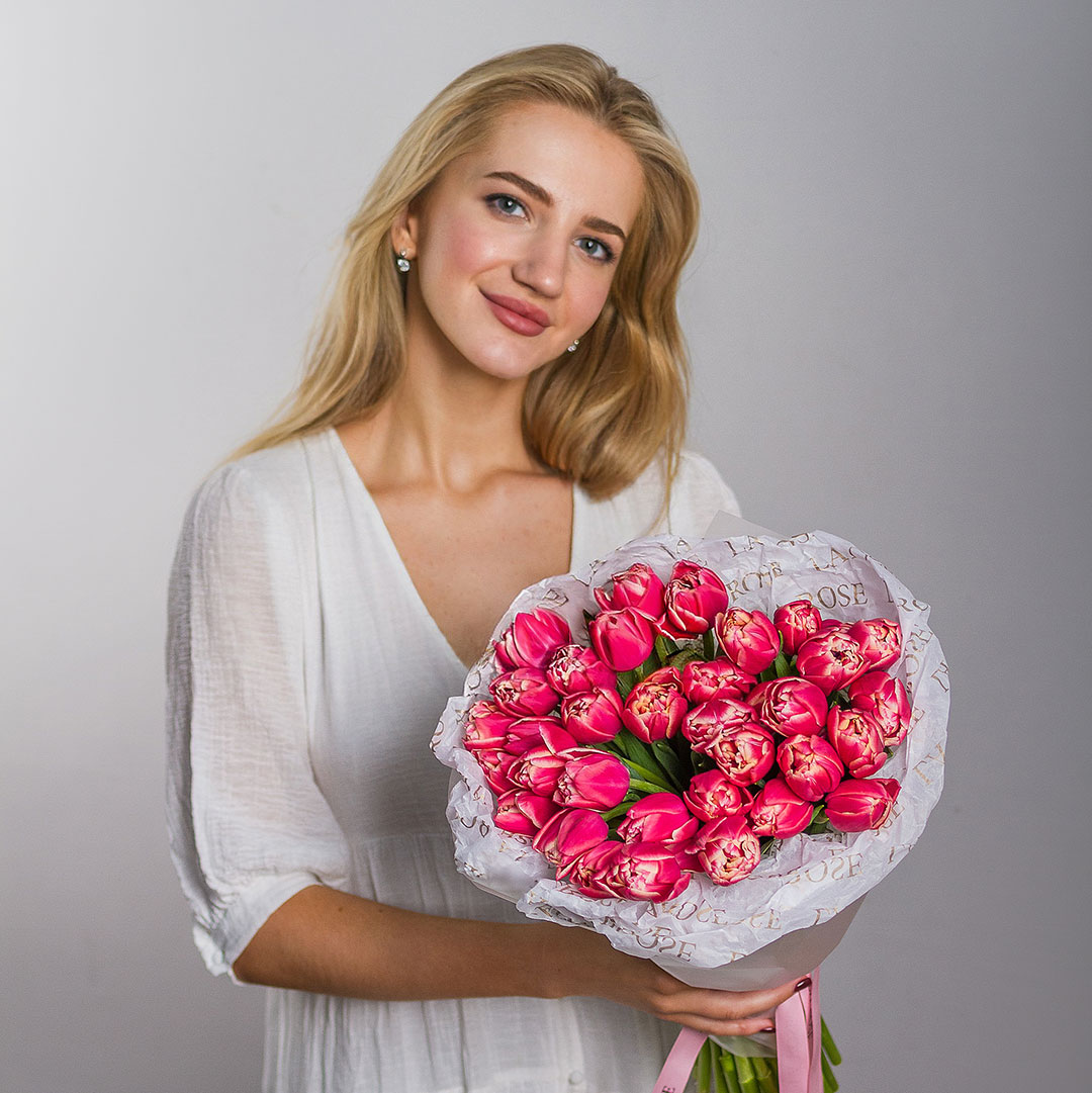 Состав: французский махровый малиновый тюльпан (35 шт.)