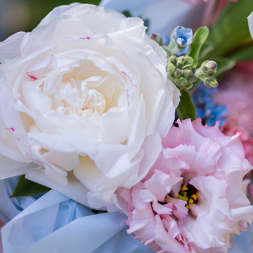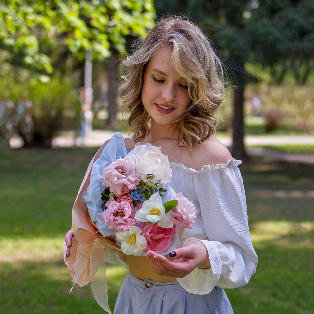Некоторые цветы и материалы являются сезонными и могут быть недоступны в данный момент, поэтому мы оставляем за собой авторское право определять конечный состав букета.
