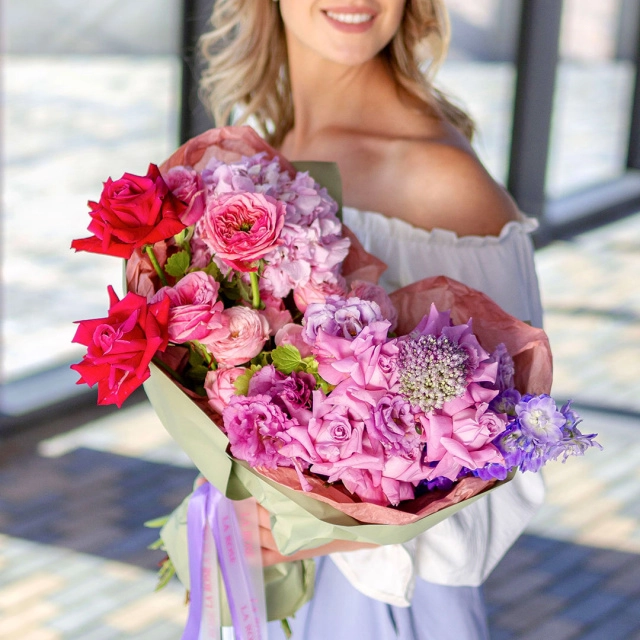 Некоторые цветы и материалы являются сезонными и могут быть недоступны в данный момент, поэтому мы оставляем за собой авторское право определять конечный состав букета.