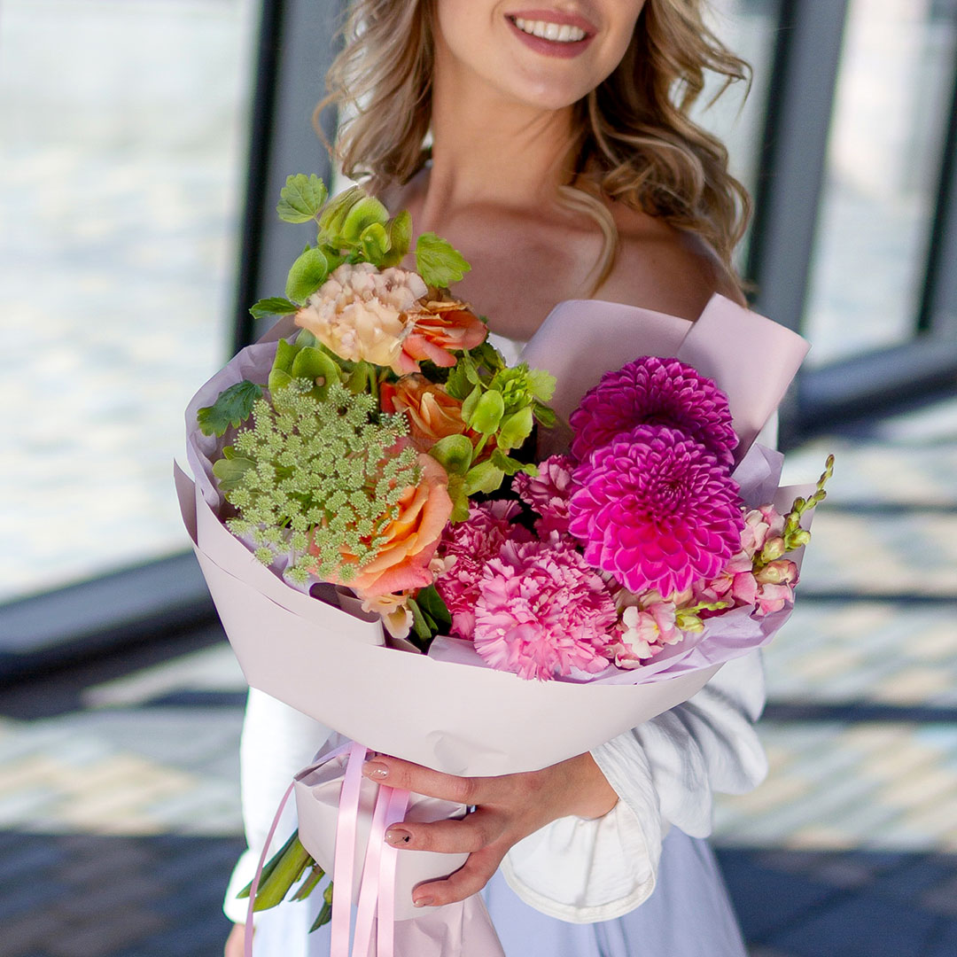 Некоторые цветы и материалы являются сезонными и могут быть недоступны в данный момент, поэтому мы оставляем за собой авторское право определять конечный состав букета.