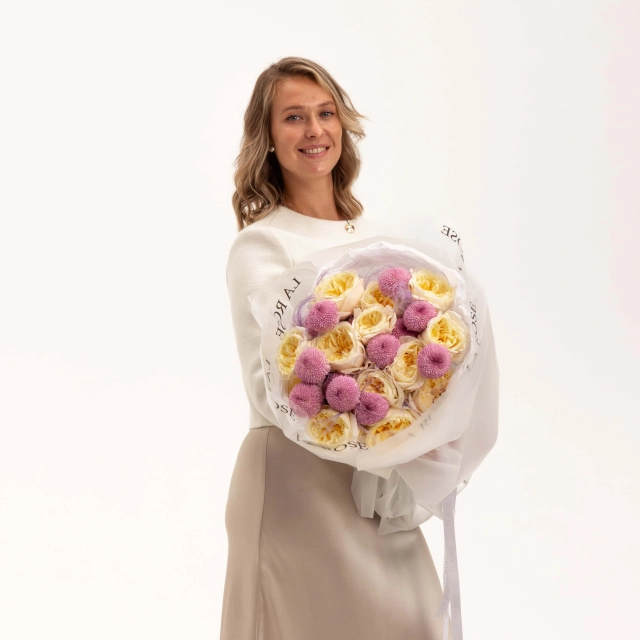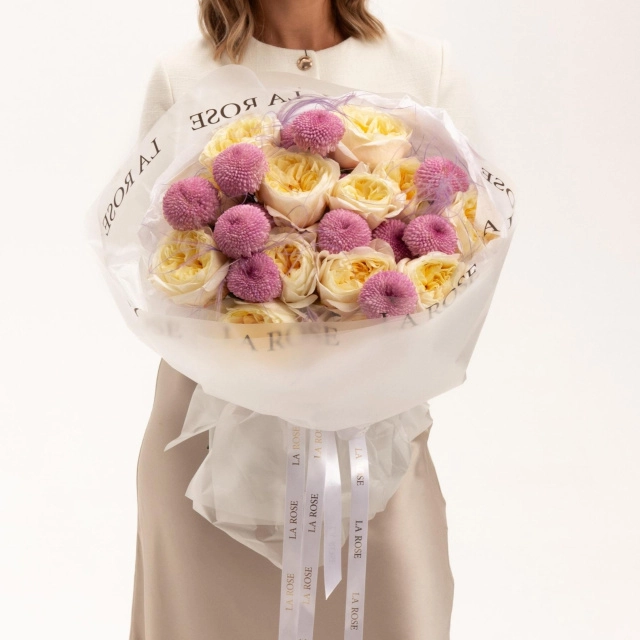 Некоторые цветы и материалы являются сезонными и могут быть недоступны в данный момент, поэтому мы оставляем за собой авторское право определять конечный состав букета.