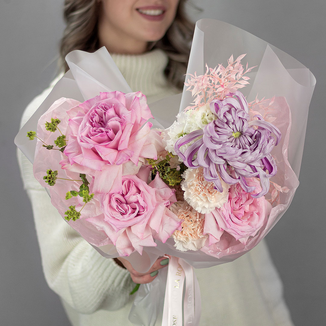 Некоторые цветы и материалы являются сезонными и могут быть недоступны в данный момент, поэтому мы оставляем за собой авторское право определять конечный состав букета.