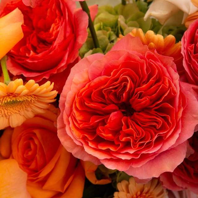 Антуриум Россия, Гербера мини Dalida Doos, Роза 60 см Эквадор Coral Reef, Роза Пионовидная 60 см Эквадор Candy X-pression, Гортензия Verena CL, Роза Пионовидная 60 см Эквадор Playa Blanca, Эустома зеленая Краснодар, Эвкалипт Stuartia MIX