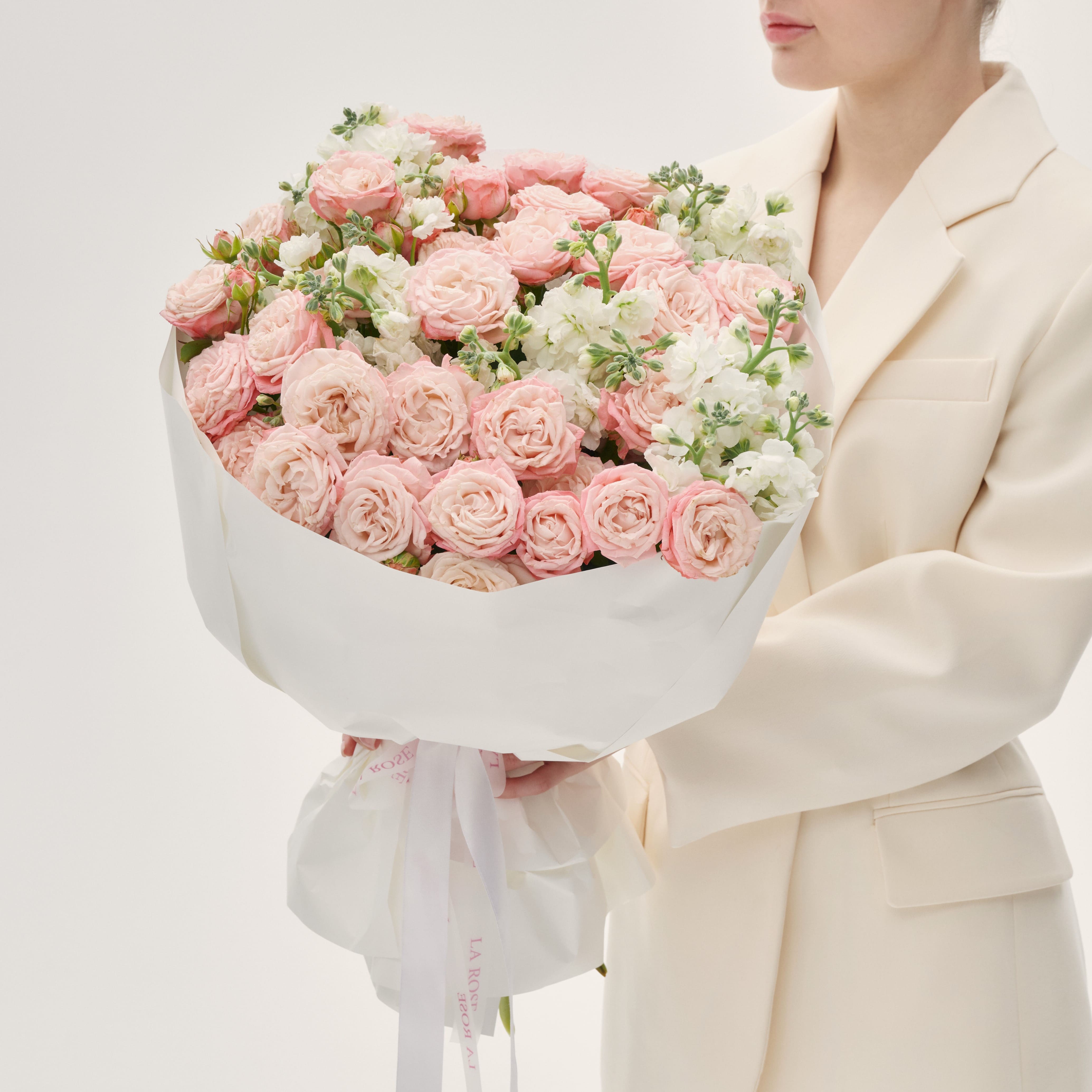 Дуобукет из кустовой розы Madam Bombastic и маттиолы