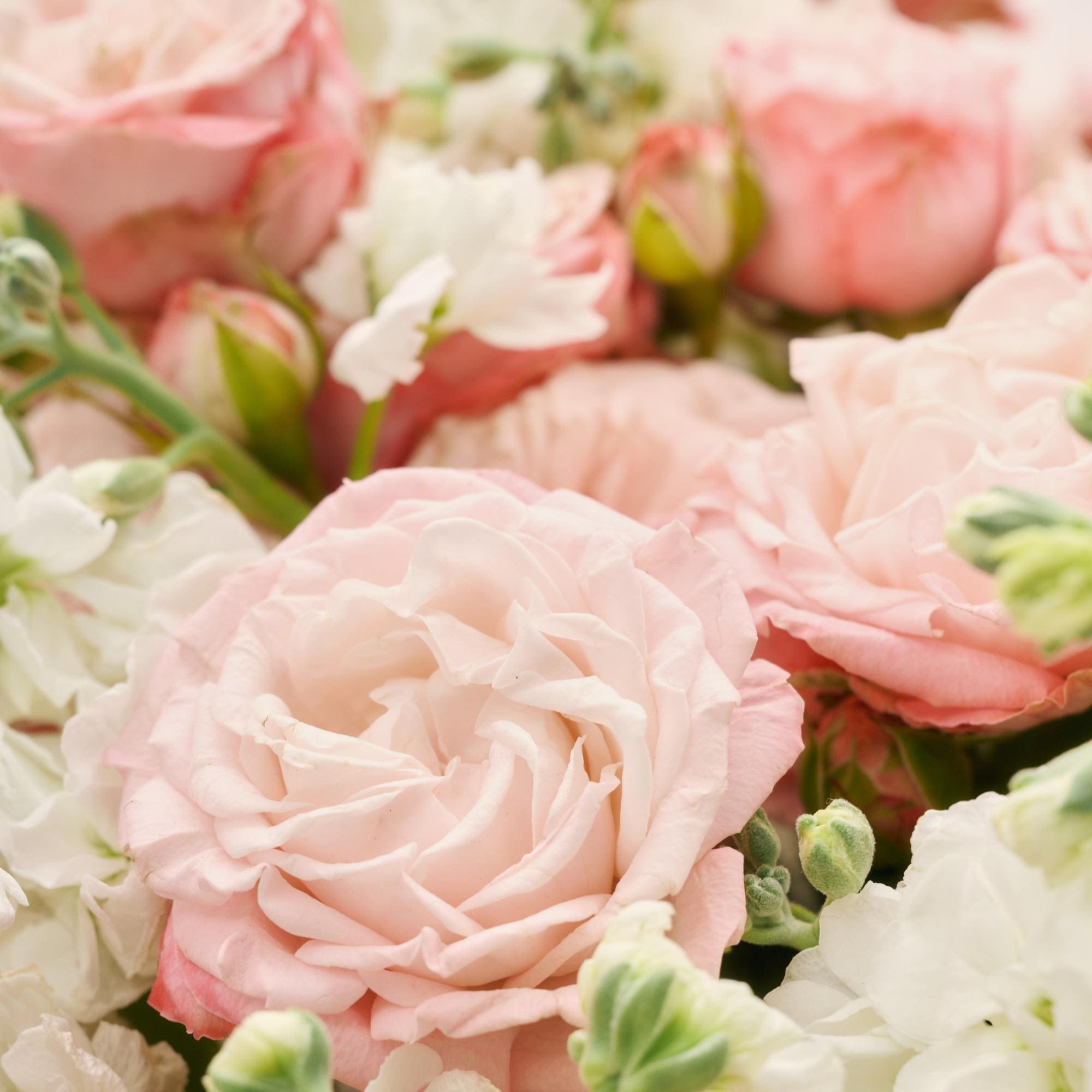 Роза кустовая 70 см Россия Мадам Бомбастик, Левкой срезка Эквадор White, Фисташка срезка