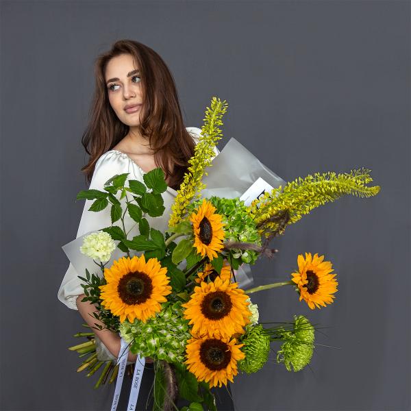 Некоторые цветы и материалы являются сезонными и могут быть недоступны в данный момент, поэтому мы оставляем за собой авторское право определять конечный состав букета.