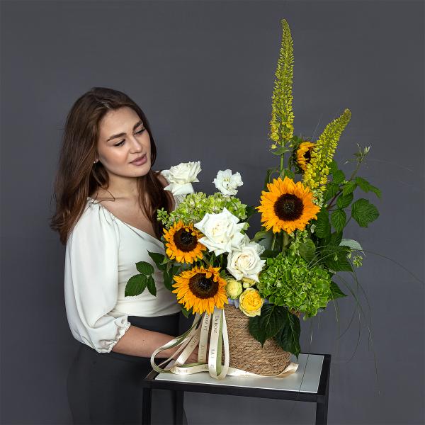 Некоторые цветы и материалы являются сезонными и могут быть недоступны в данный момент, поэтому мы оставляем за собой авторское право определять конечный состав букета.