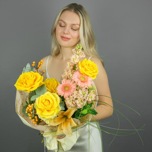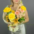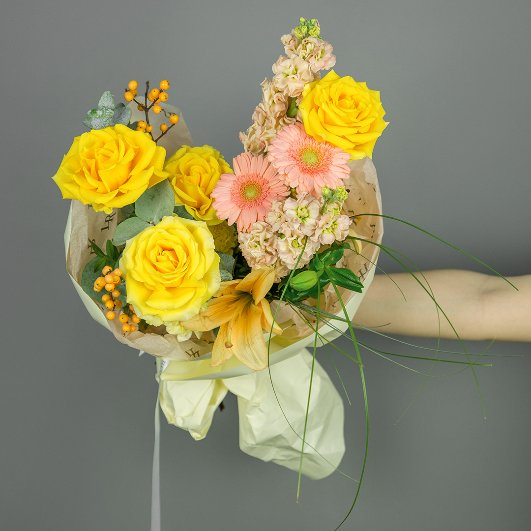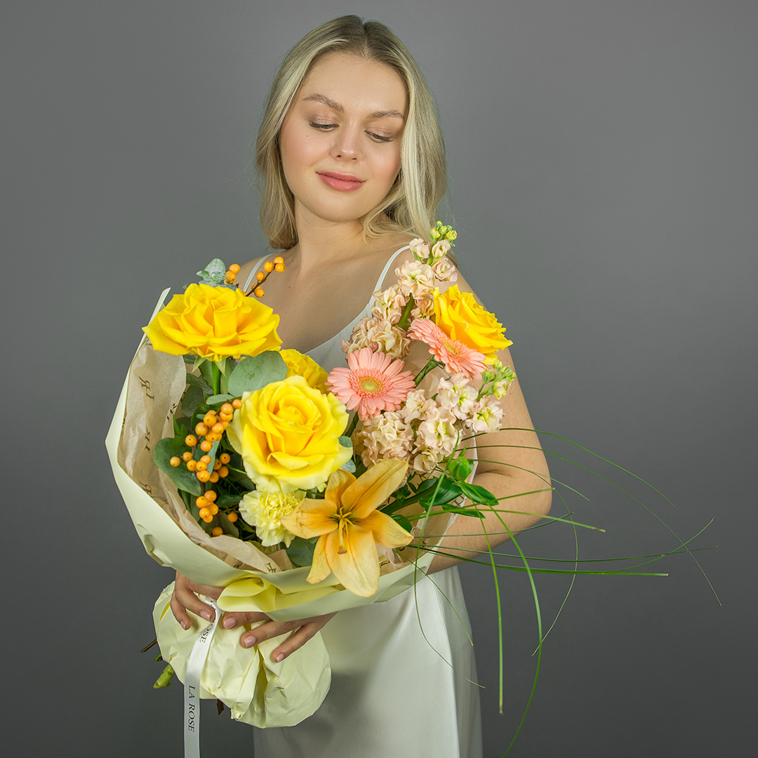 Некоторые цветы и материалы являются сезонными и могут быть недоступны в данный момент, поэтому мы оставляем за собой авторское право определять конечный состав букета.