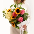 Некоторые цветы и материалы являются сезонными и могут быть недоступны в данный момент, поэтому мы оставляем за собой авторское право определять конечный состав букета.
