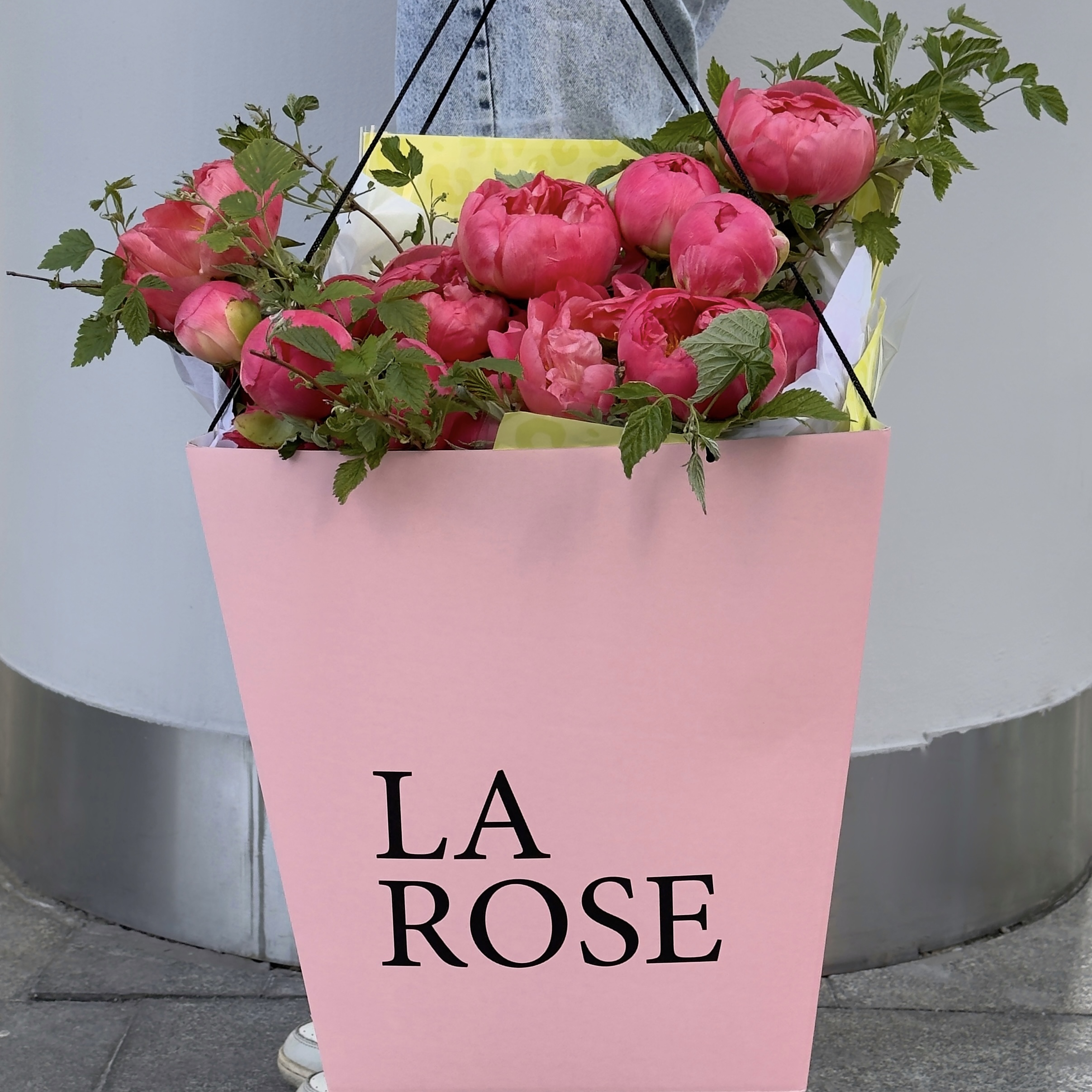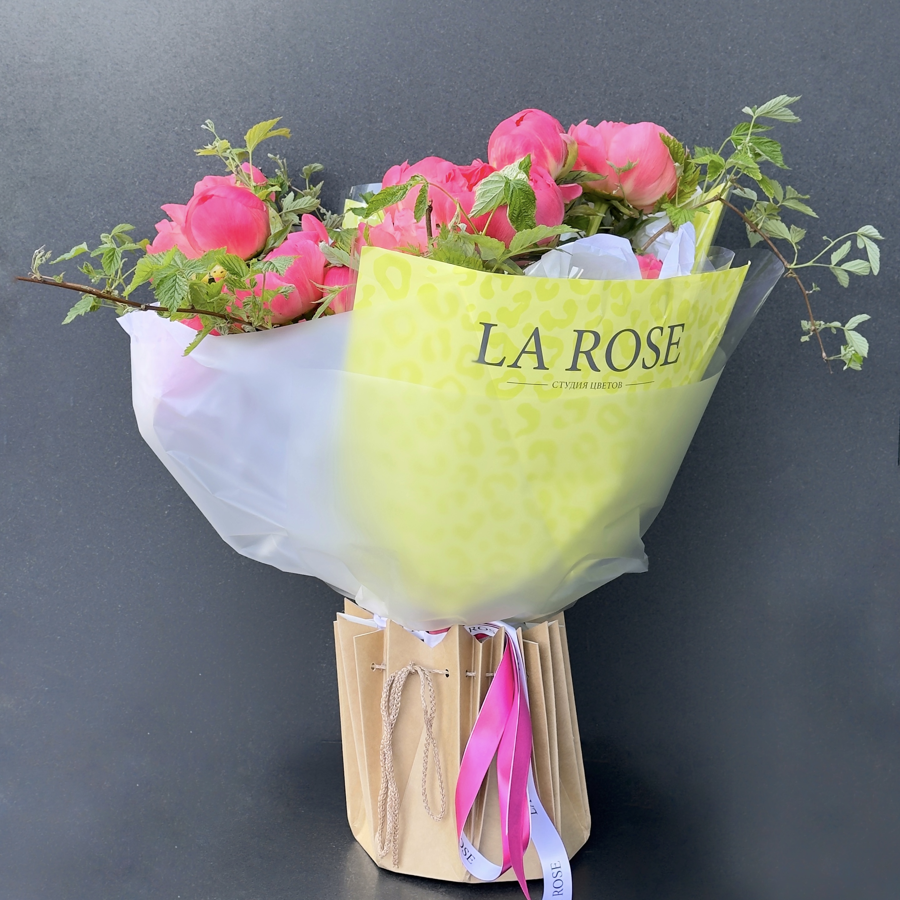 Пионы, Листья малины, Упаковка, Лента