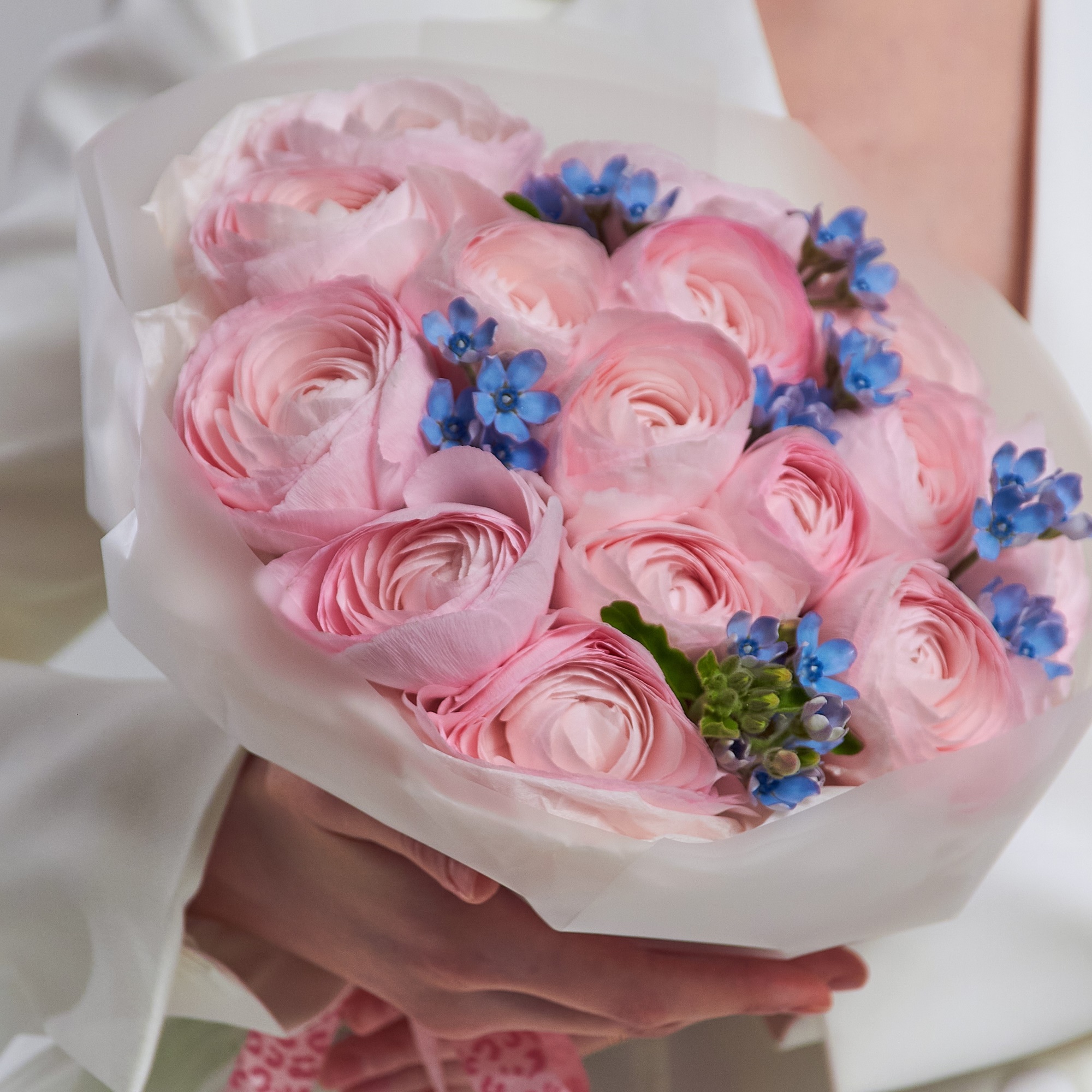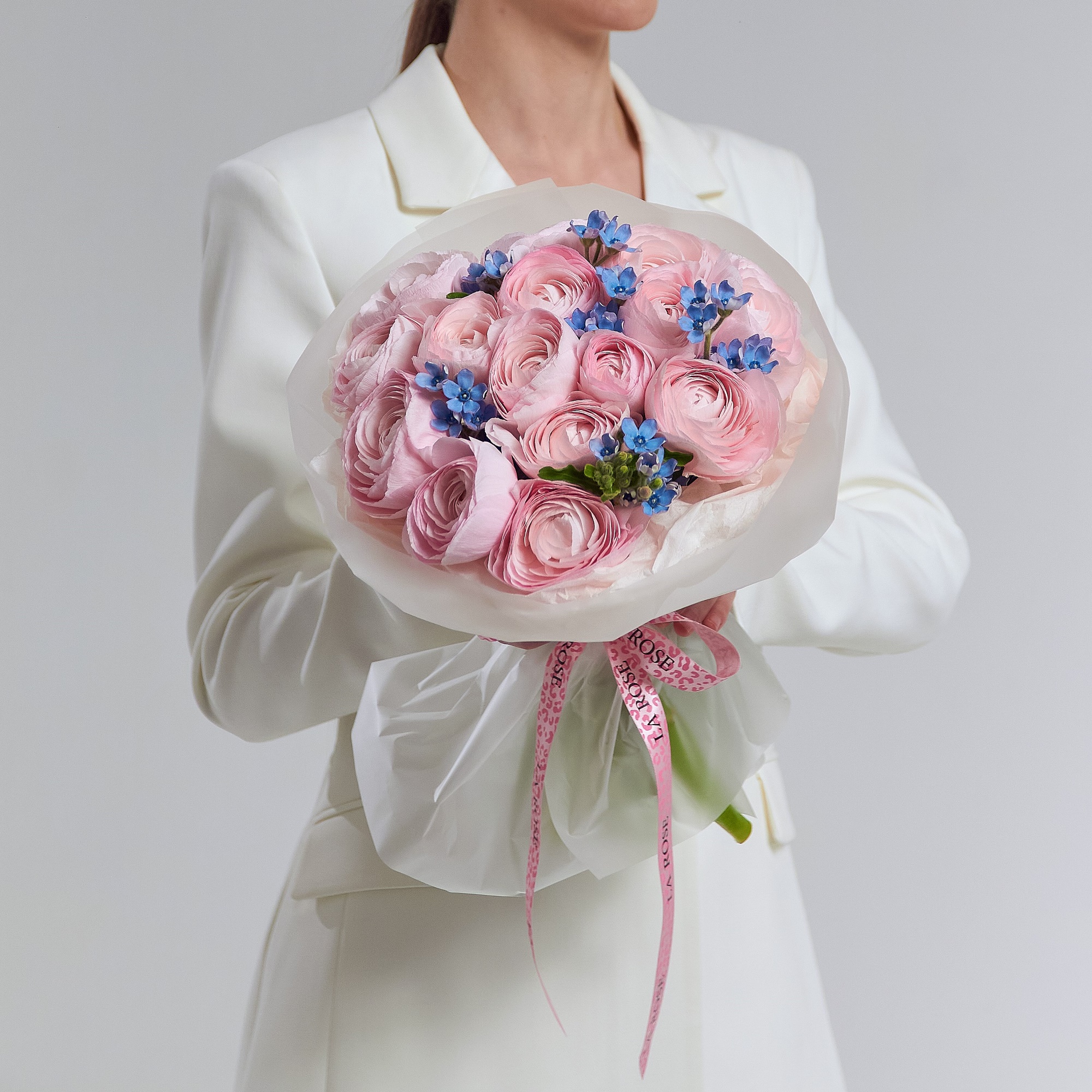 Состав: Ранункулус, Оксипеталум Tan Pur Blu, Фисташка