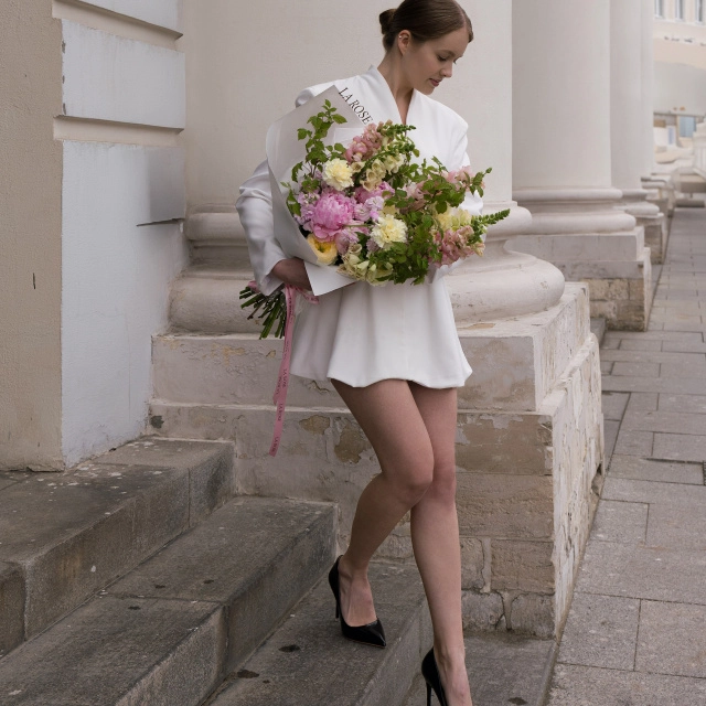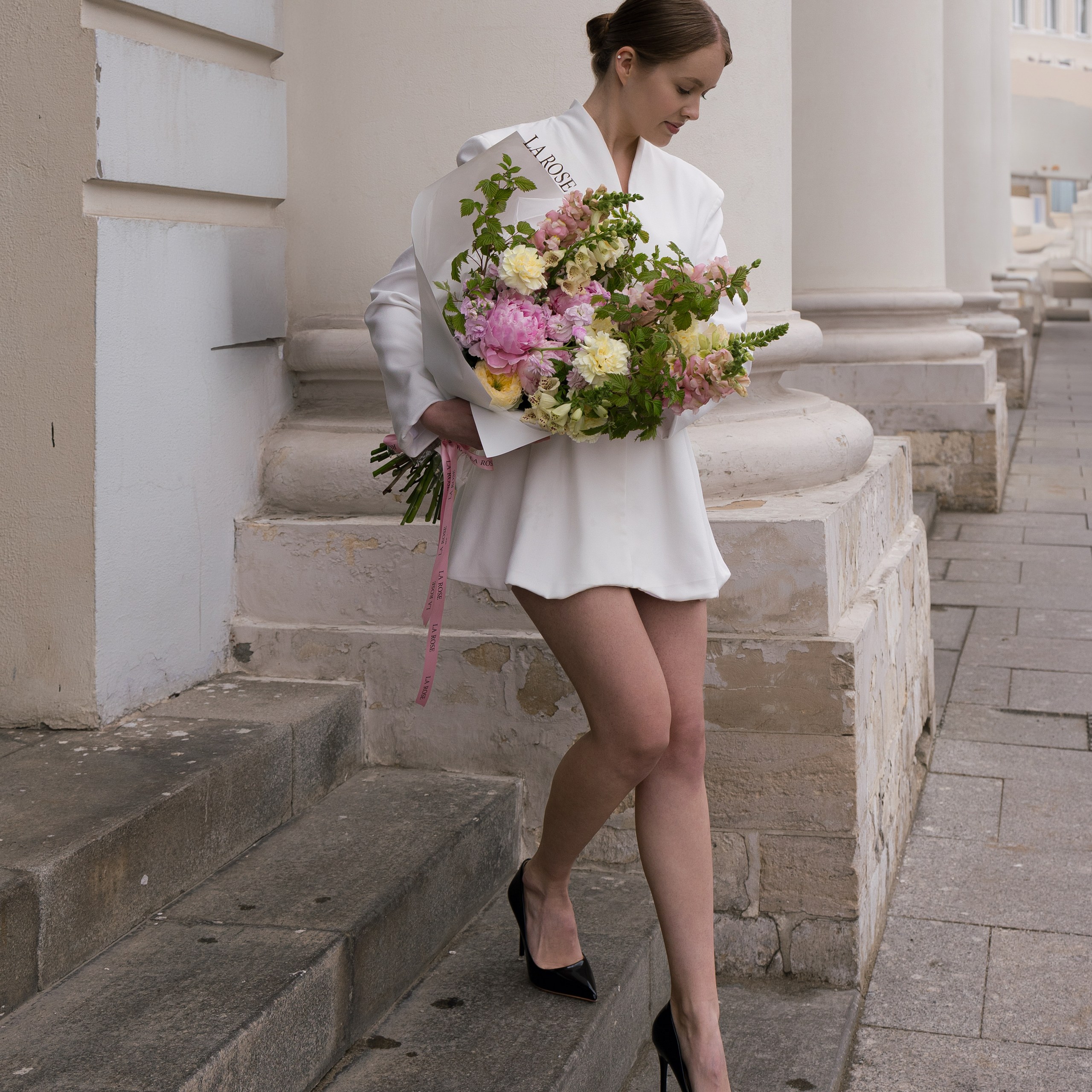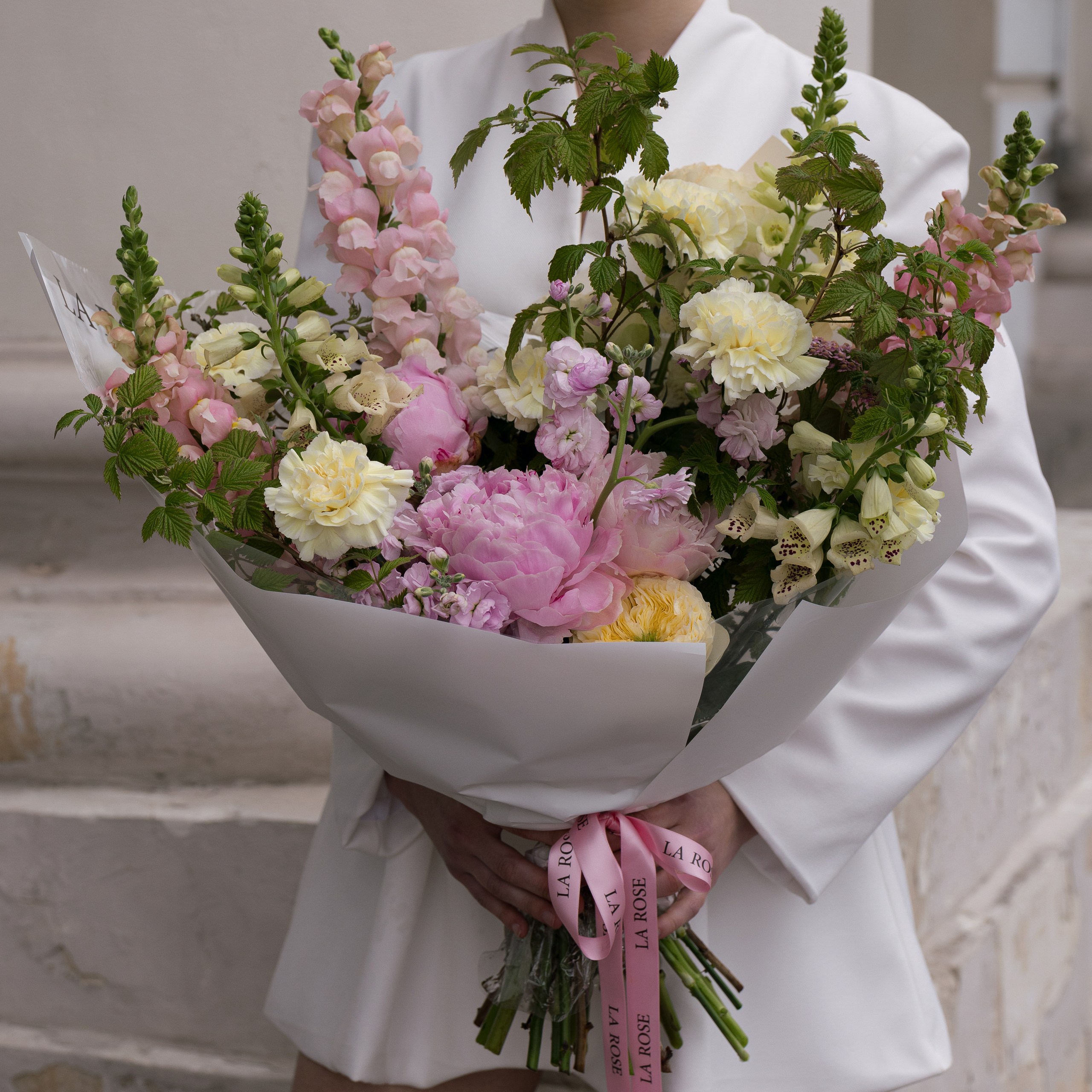 Некоторые цветы и материалы являются сезонными и могут быть недоступны в данный момент, поэтому мы оставляем за собой авторское право определять конечный состав букета.