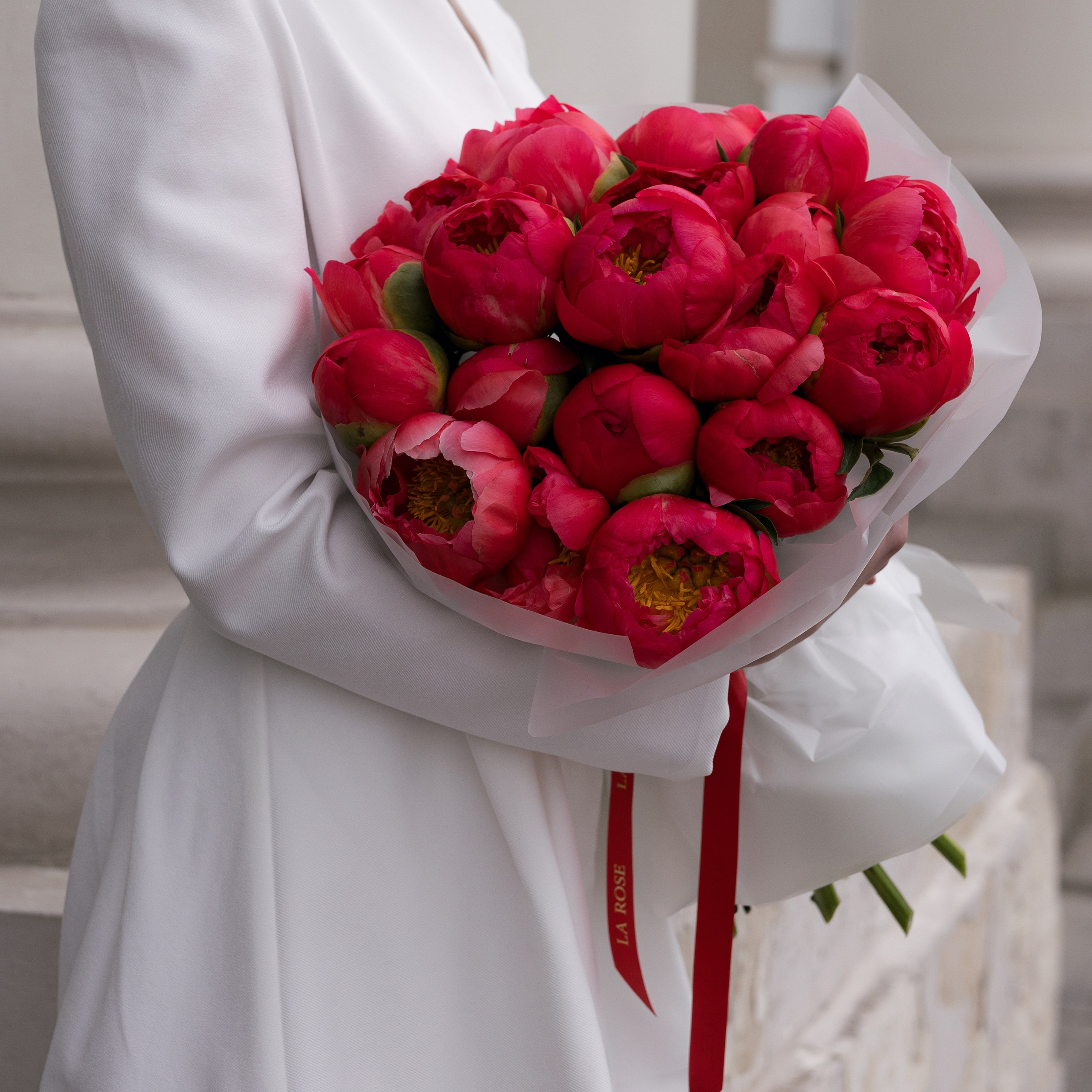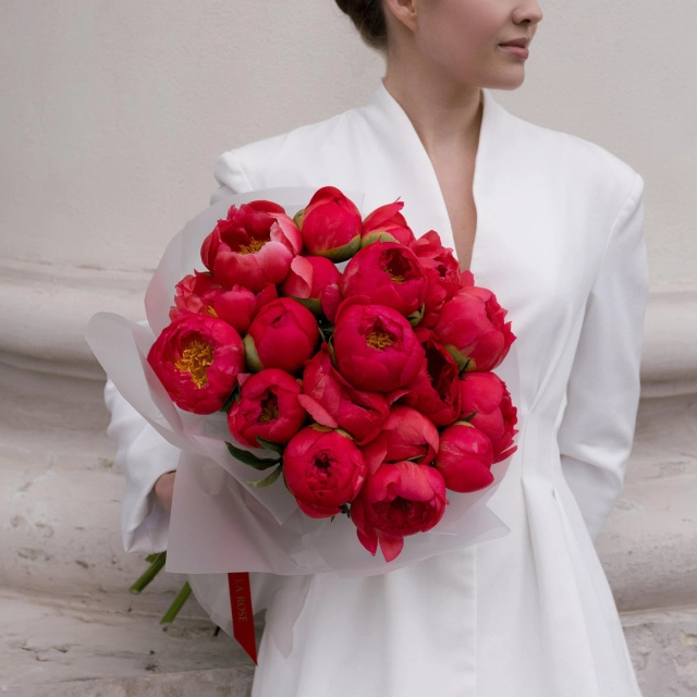 Монобукет коралловых пионов