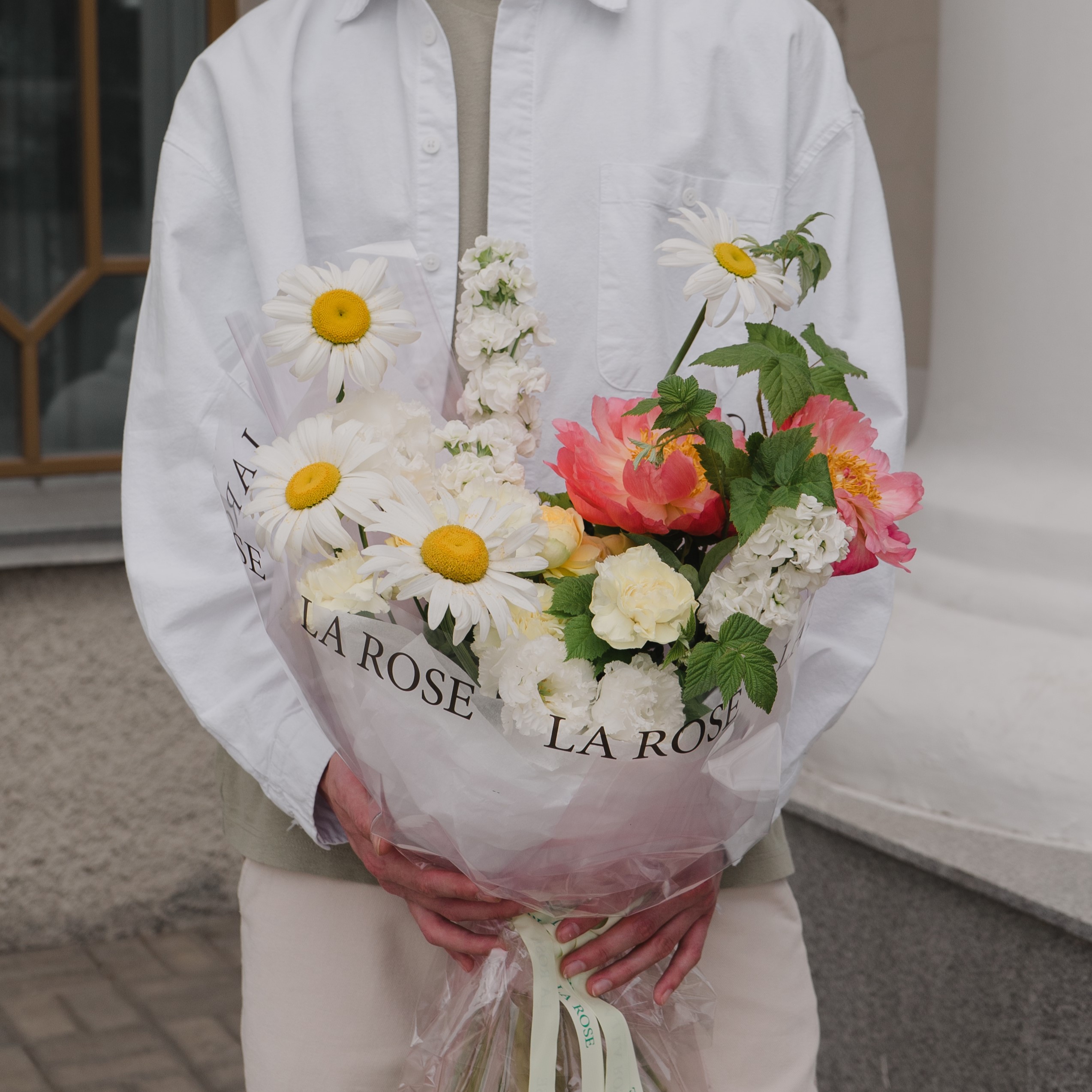 Некоторые цветы и материалы являются сезонными и могут быть недоступны в данный момент, поэтому мы оставляем за собой авторское право определять конечный состав букета.