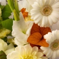Гладиолус белый Краснодар, Малина, Роза 60 см Эквадор Lemonade, Георгин срезка, Гербера Albino, Эвкалипт Stuartia MIX