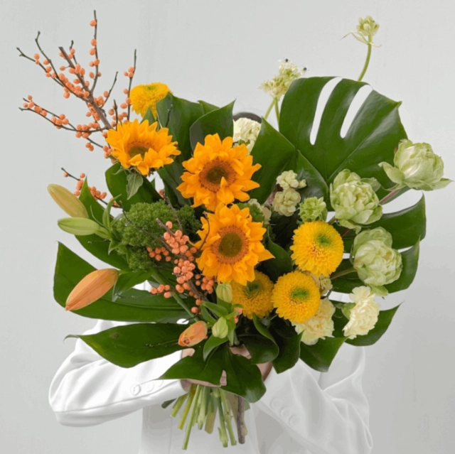 Некоторые цветы и материалы являются сезонными и могут быть недоступны в данный момент, поэтому мы оставляем за собой авторское право определять конечный состав букета.