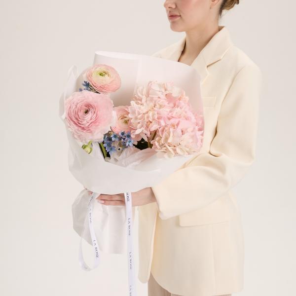 Нежный букет с гортензией и оксипеталумом