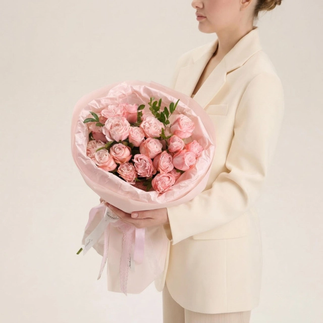 Монобукет из кустовой розы Madam Bombastic, 5 шт