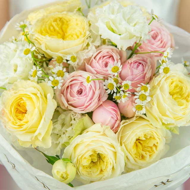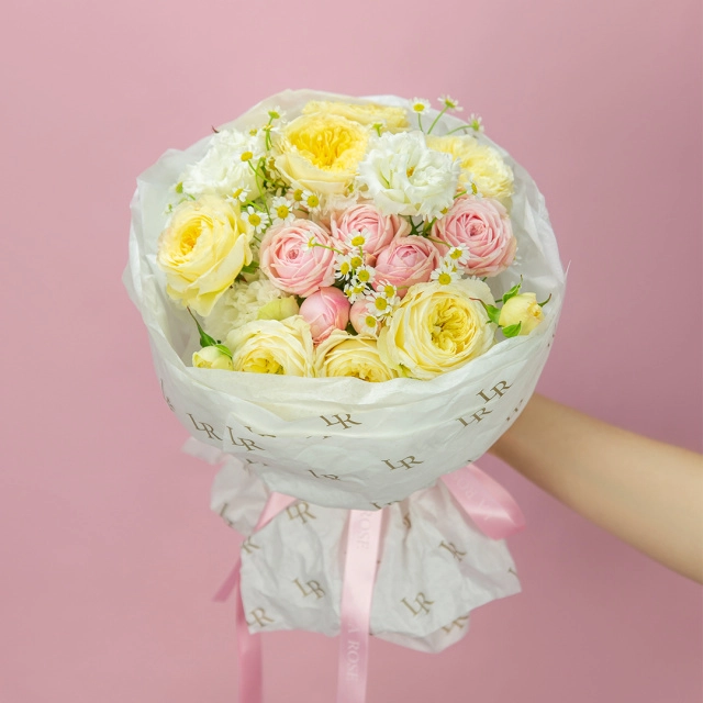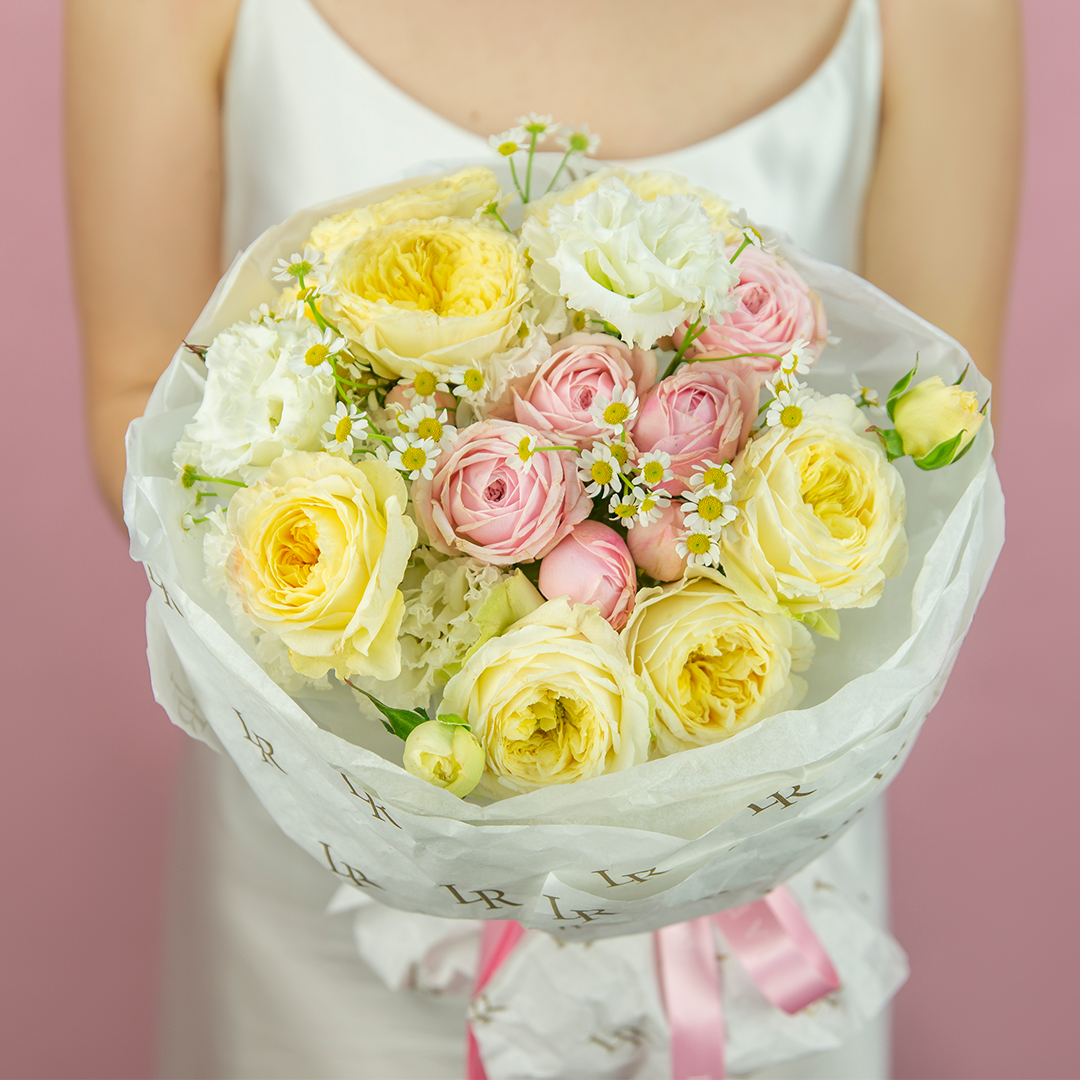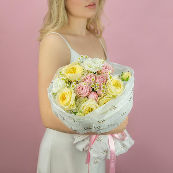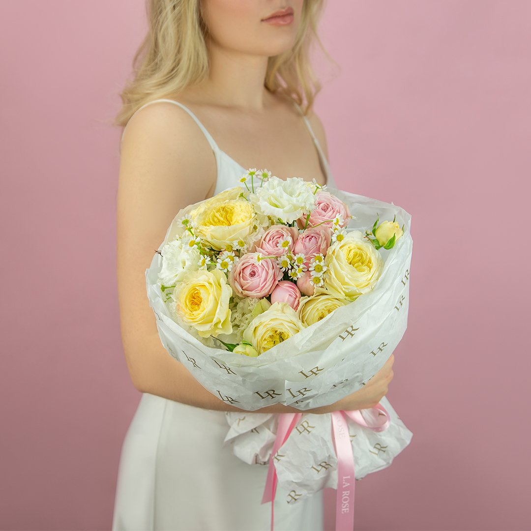 Некоторые цветы и материалы являются сезонными и могут быть недоступны в данный момент, поэтому мы оставляем за собой авторское право определять конечный состав букета.