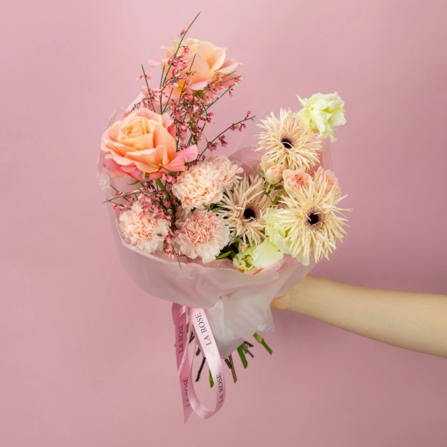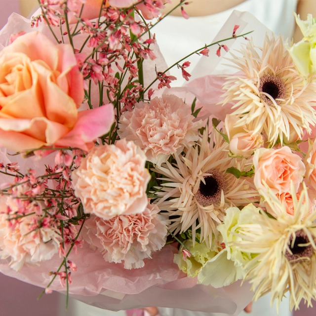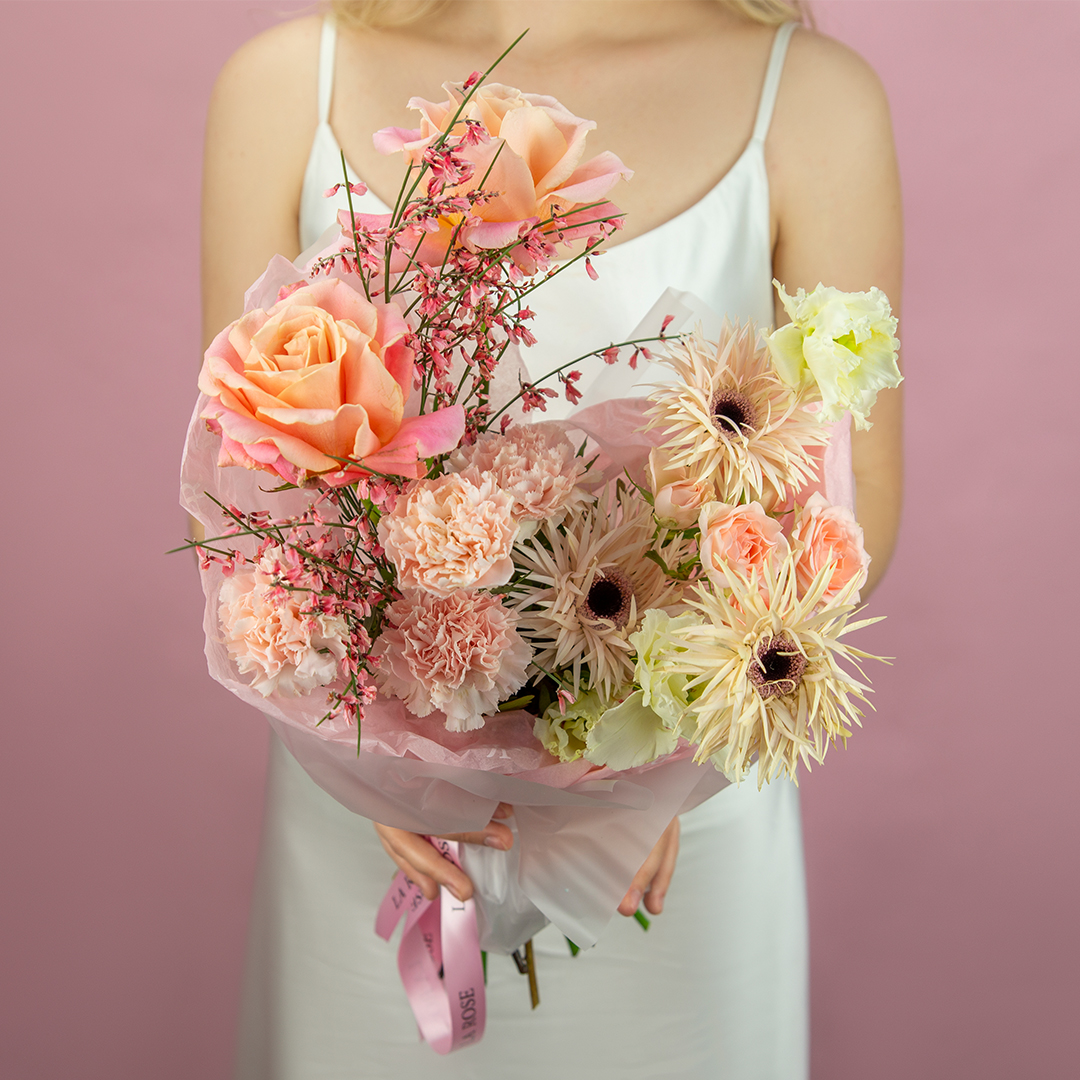 Некоторые цветы и материалы являются сезонными и могут быть недоступны в данный момент, поэтому мы оставляем за собой авторское право определять конечный состав букета.