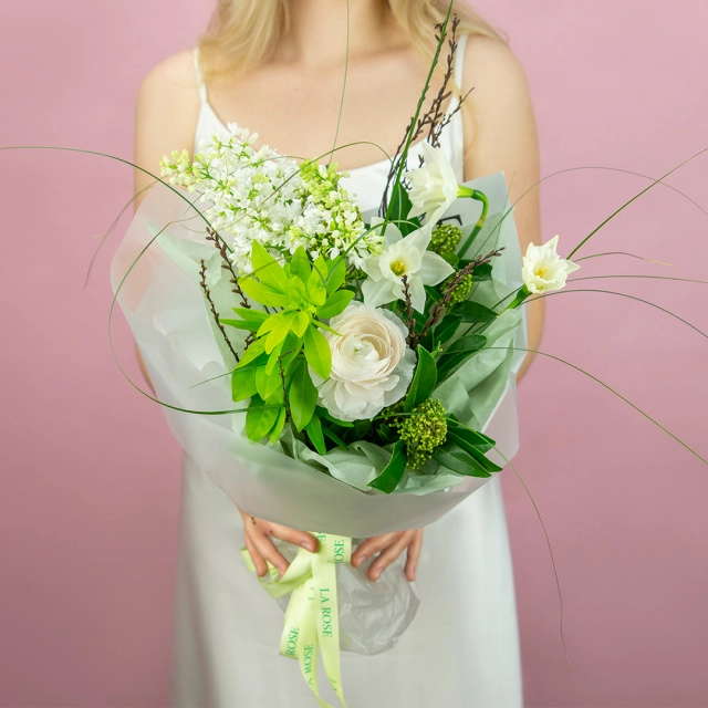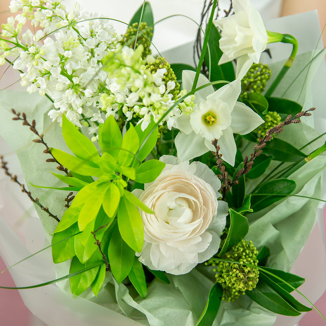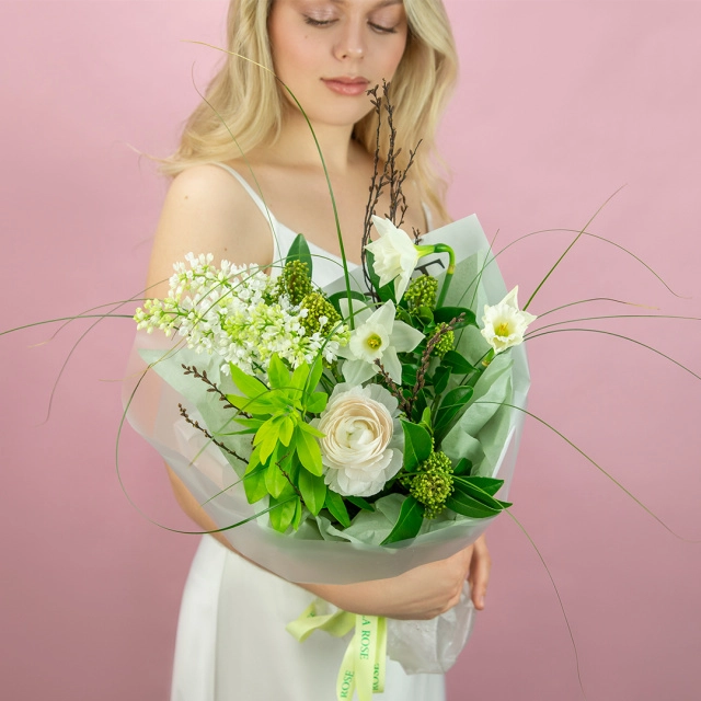 Некоторые цветы и материалы являются сезонными и могут быть недоступны в данный момент, поэтому мы оставляем за собой авторское право определять конечный состав букета.