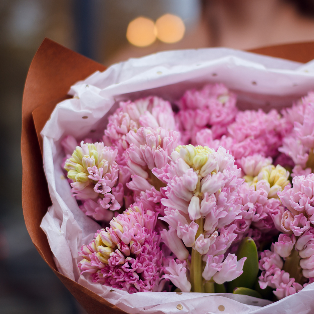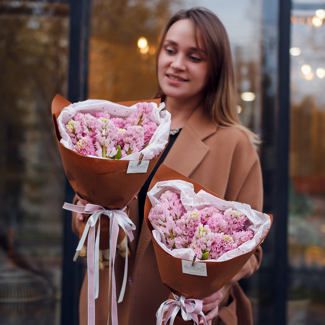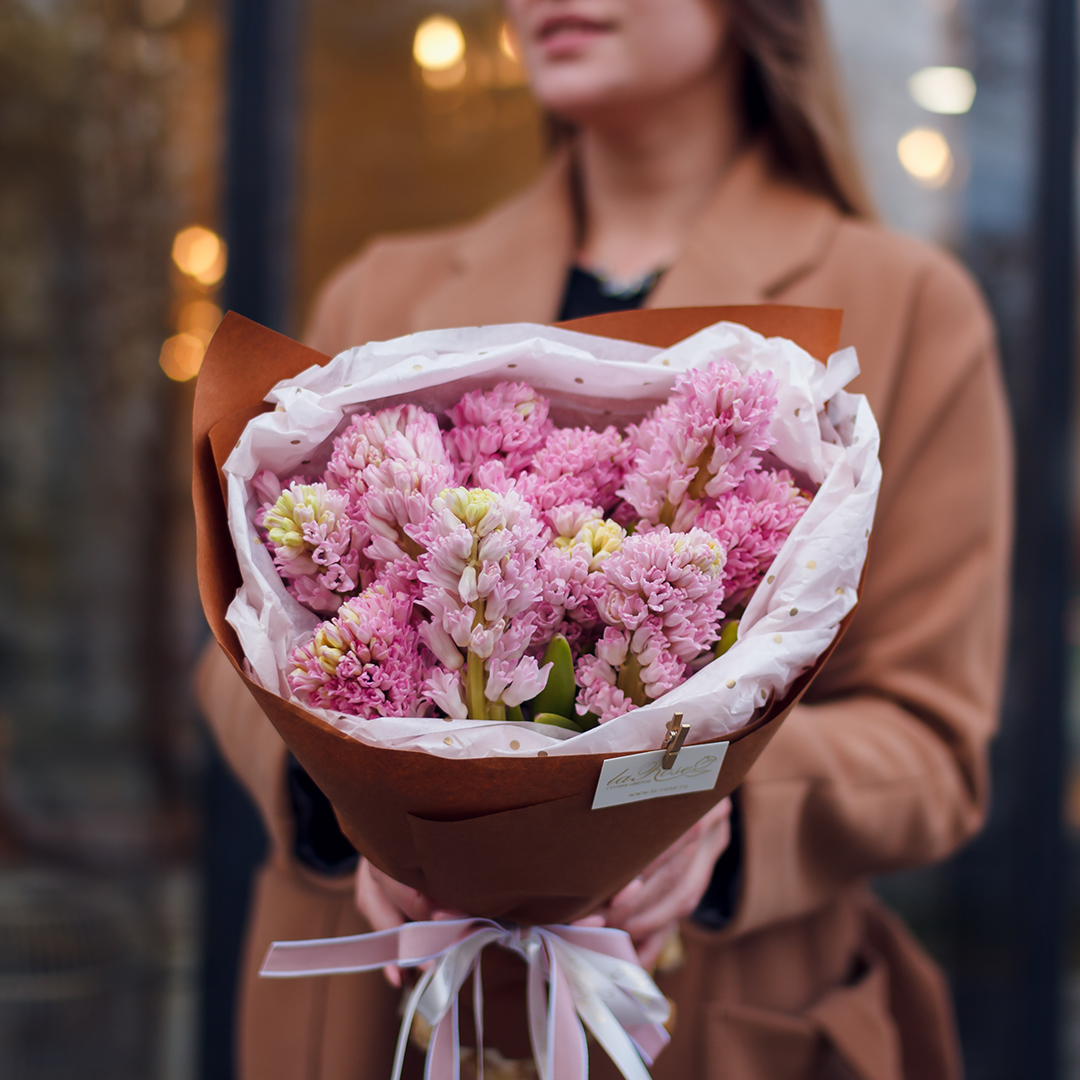 Букет Розовые гиацинты в упаковке