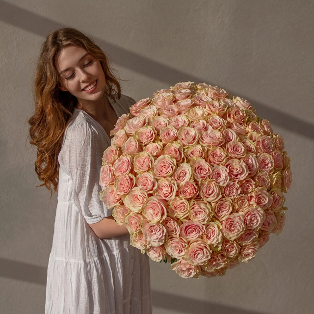 Букет 101 роза Pink Mondial