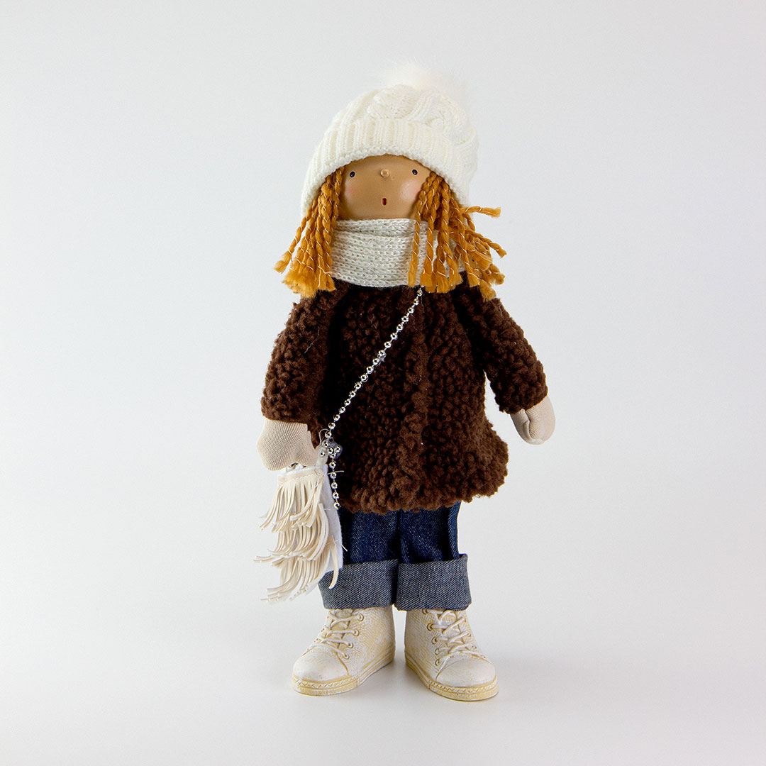 Интерьерная кукла в белой шапке (30 см)
