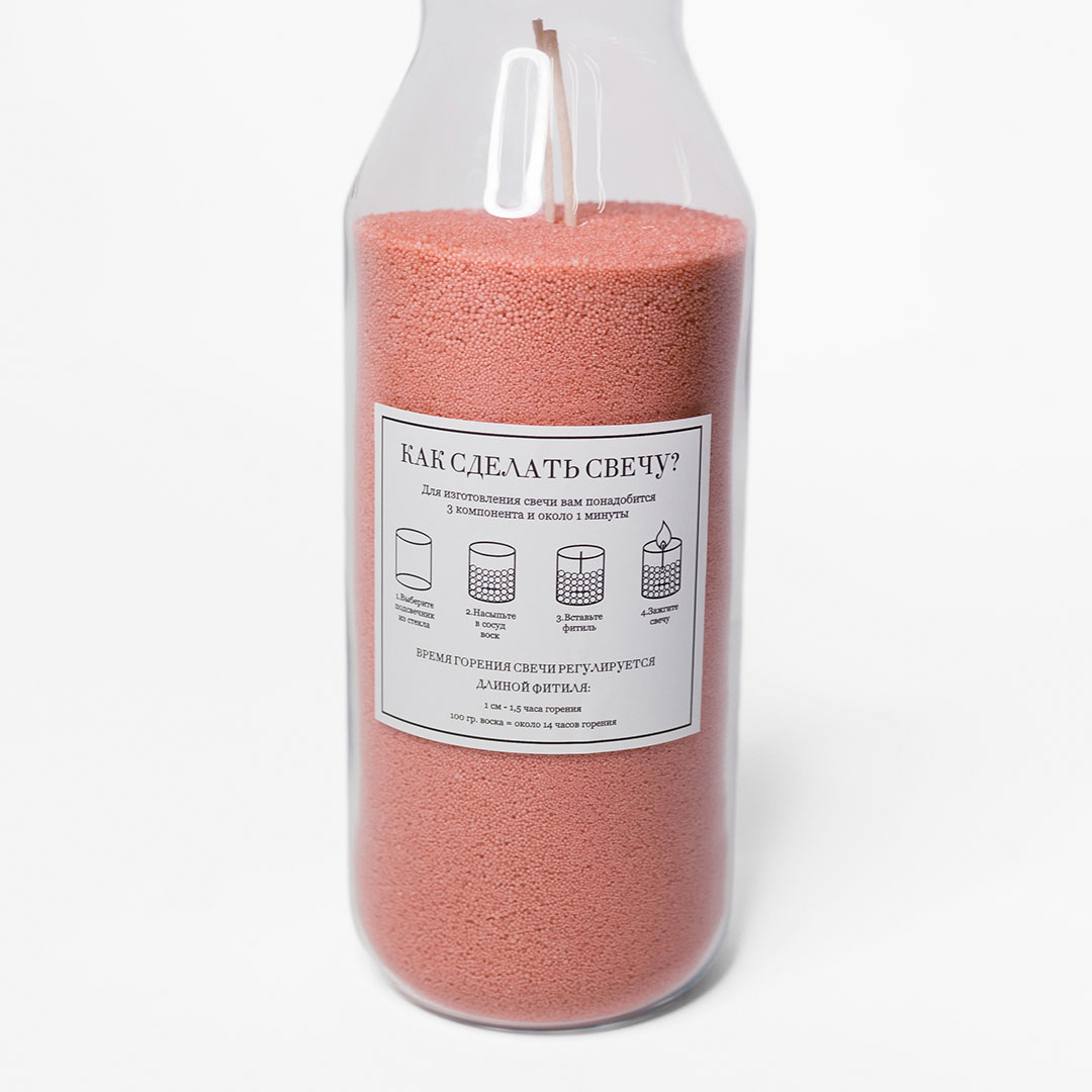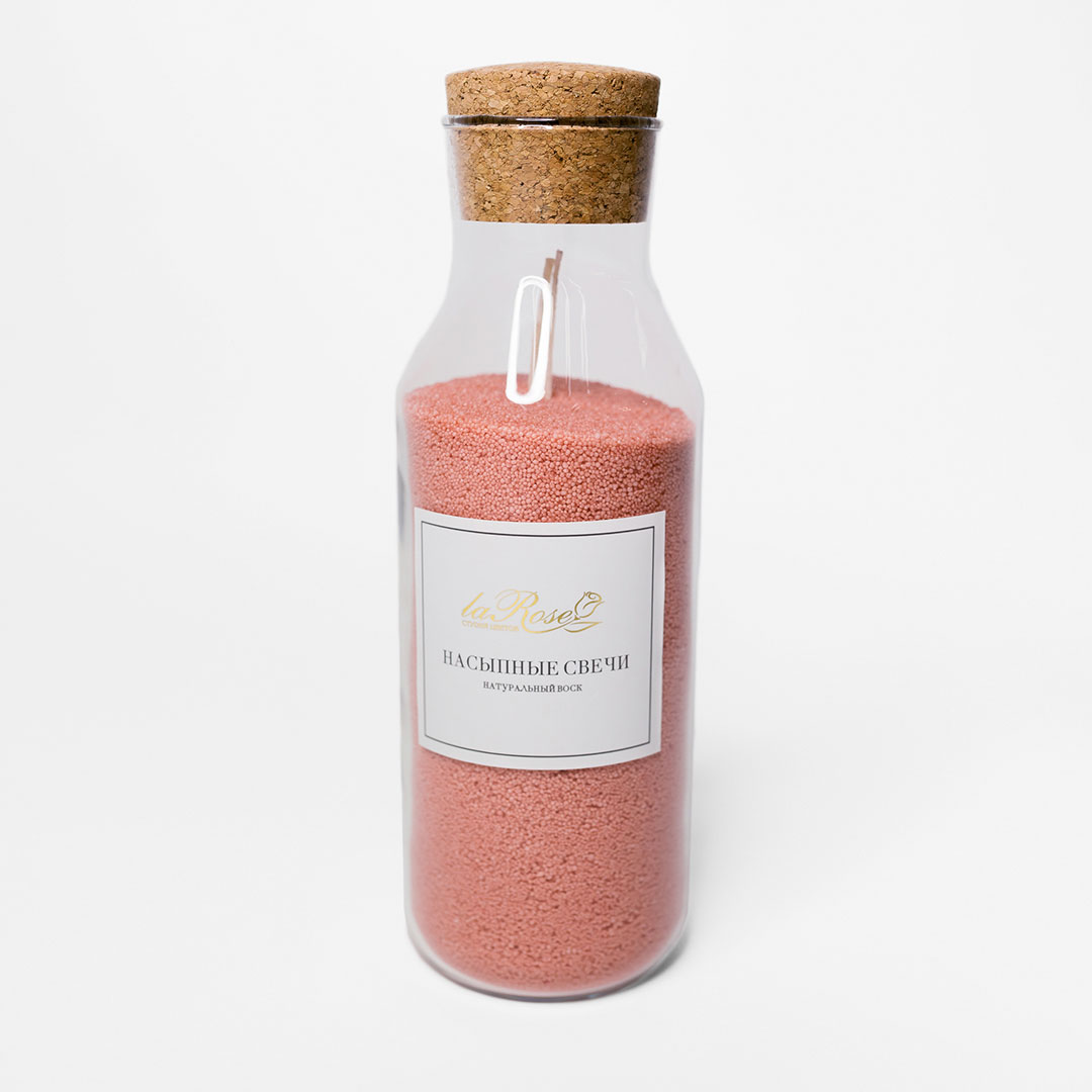 Розовая насыпная свеча в бутылке