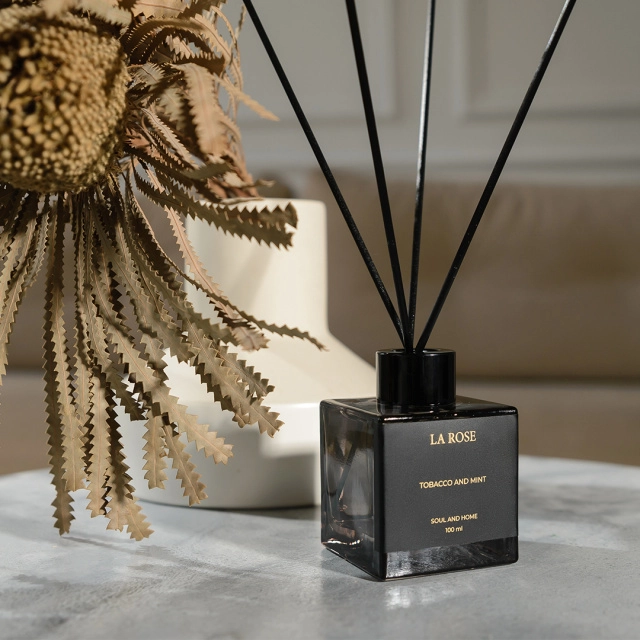 Стильный ароматический диффузор в темном флаконе прекрасно впишется в любой интерьер и наполнит Ваше помещение удивительными ароматами.