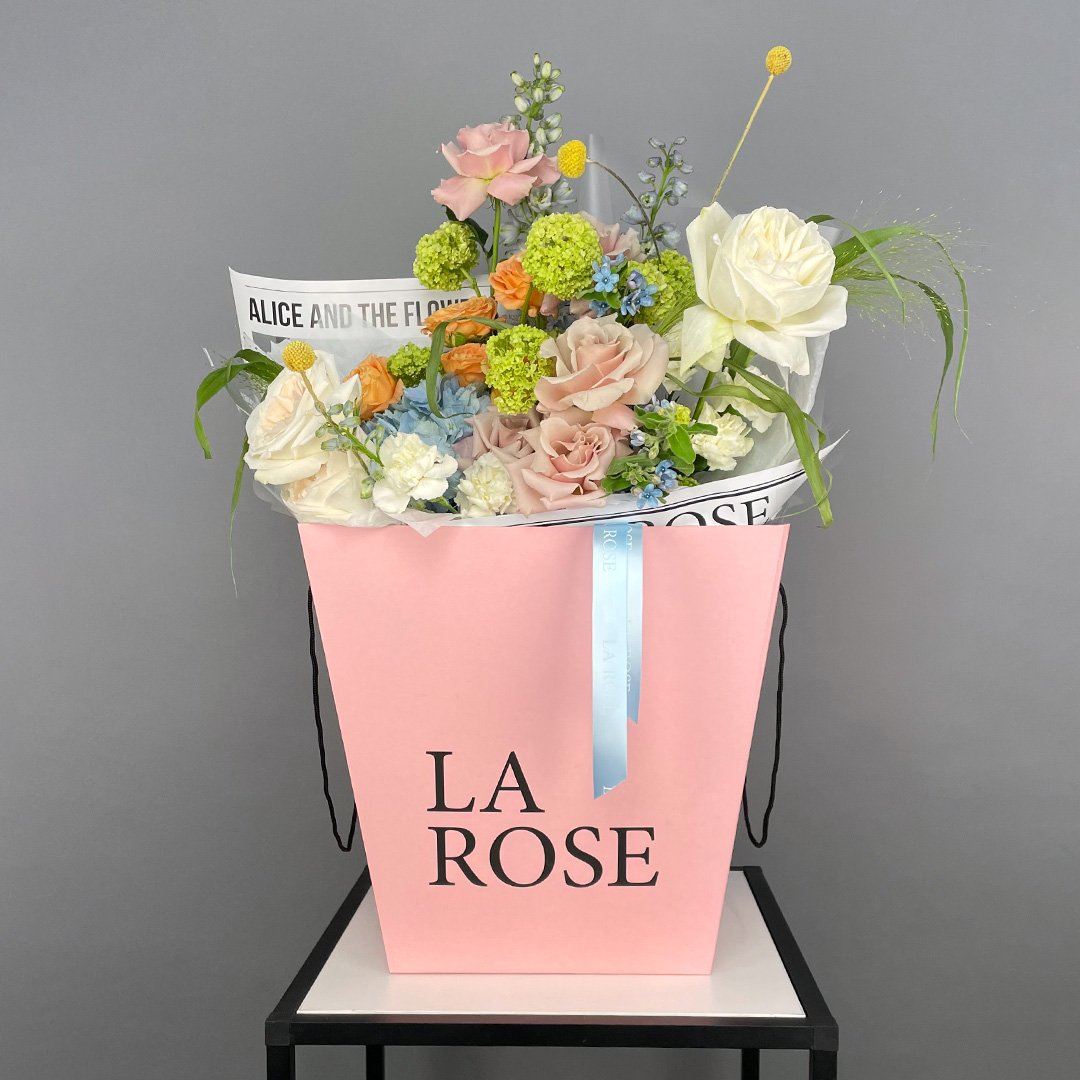 Свежие цветы от La Rose доставляются в фирменной коробке и вазе. Переставьте букет из аквабокса в вазу с водой, предварительно подрезав стебли под углом. Меняйте воду ежедневно, обновляя срез. На 2-3-й день можете добавить наш порошок. Используйте холодную воду и добавляйте лёд для лучшего эффекта. Держите цветы вдали от отопителей, солнца и фруктов — они вредят растениям.
