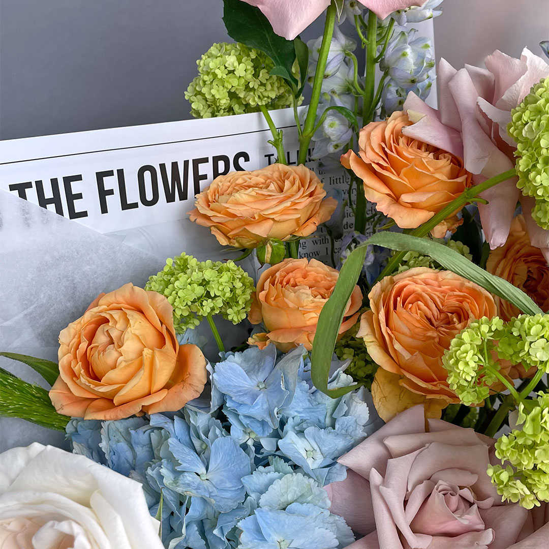 Некоторые цветы и материалы являются сезонными и могут быть недоступны в данный момент, поэтому мы оставляем за собой авторское право определять конечный состав букета.
