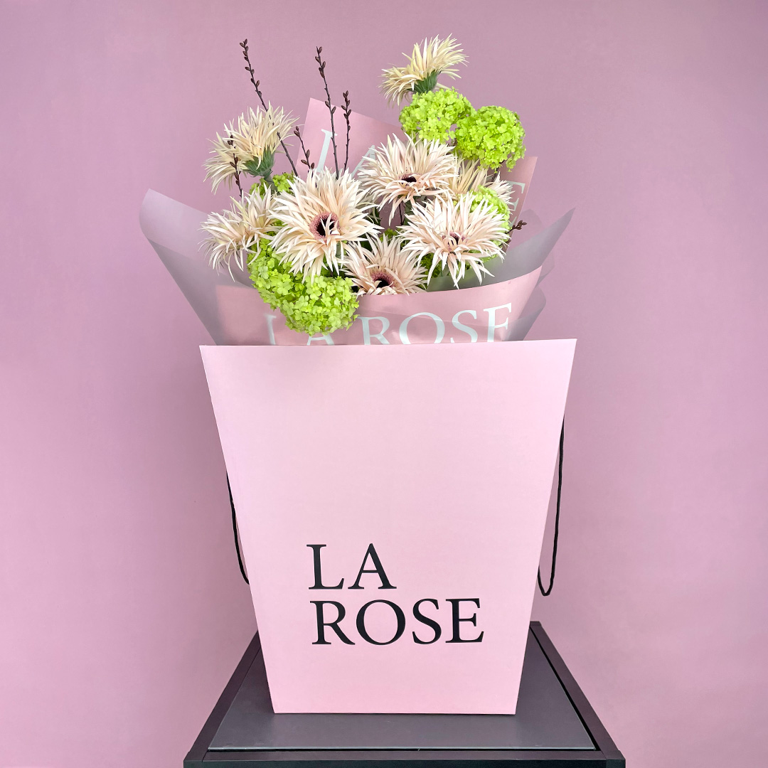 Свежие цветы от La Rose доставляются в фирменной коробке и вазе. Переставьте букет из аквабокса в вазу с водой, предварительно подрезав стебли под углом. Меняйте воду ежедневно, обновляя срез. На 2-3-й день можете добавить наш порошок. Используйте холодную воду и добавляйте лёд для лучшего эффекта. Держите цветы вдали от отопителей, солнца и фруктов — они вредят растениям.