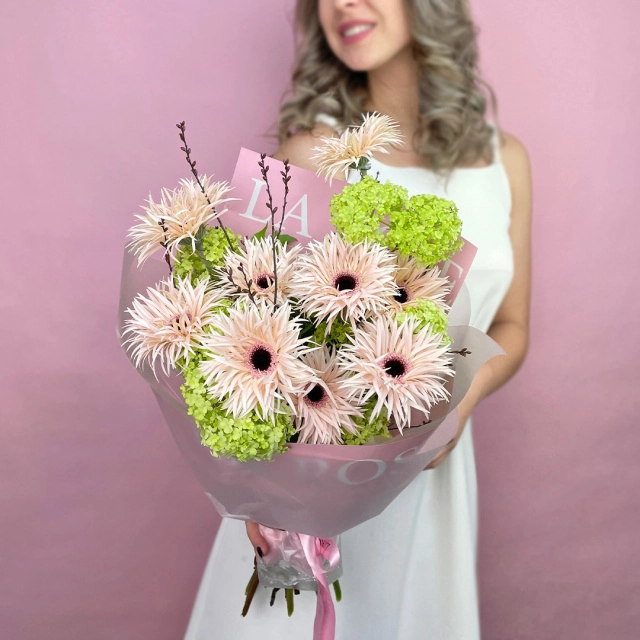 Некоторые цветы и материалы являются сезонными и могут быть недоступны в данный момент, поэтому мы оставляем за собой авторское право определять конечный состав букета.