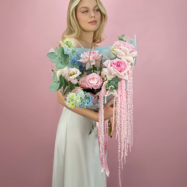 Некоторые цветы и материалы являются сезонными и могут быть недоступны в данный момент, поэтому мы оставляем за собой авторское право определять конечный состав букета.